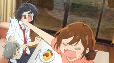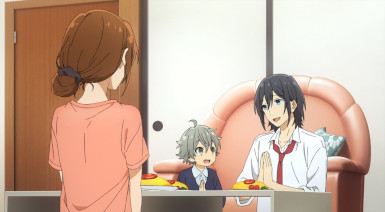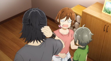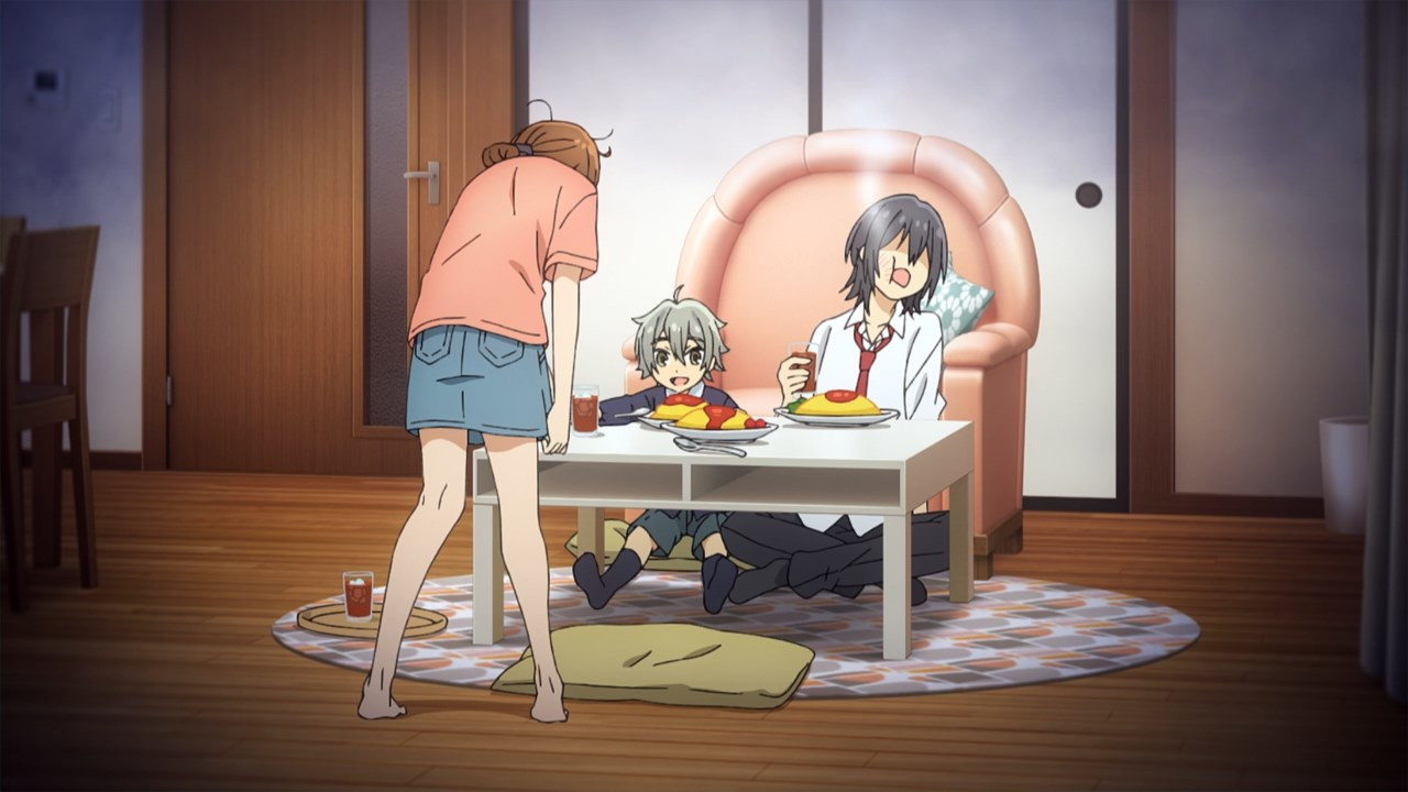 There are a lot of “click” moments here that just resonate with me, as they did in the manga. On the whole I think the easy family dynamic that springs up between Miyamura and the Hori siblings is probably the most winning part of the series (though the competition is fierce). Learning that Ishikawa is actually a really nice guy tells us what sort of series Horimiya is going to be – and what it isn’t. And the fact that what upsets Hori most about Miyamura’s disclaimer to Ishikawa is that he suggested she was just being nice by allowing him into her life is heartbreaking in an emotionally subtle and profound way. Spot on.