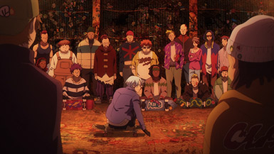 Even though he loses, it’s clear that Reki has put a lot of time and effort into his practice. He’s a dedicated little machine learning all he can about the skate culture by working in a skate shop, designing his own boards, and learning from his mentor/ store manager Oka. The kid is obsessed and he doesn’t hesitate to share his obsession with his new colleague Langa. That’s right, the newbie swiped a job away from the rookie. They’re tasked with delivering a new board over to “S” one night but as it would happen, they mess up. It’s too late to get the racer his new equipment so Langa volunteers to replace him during the race.