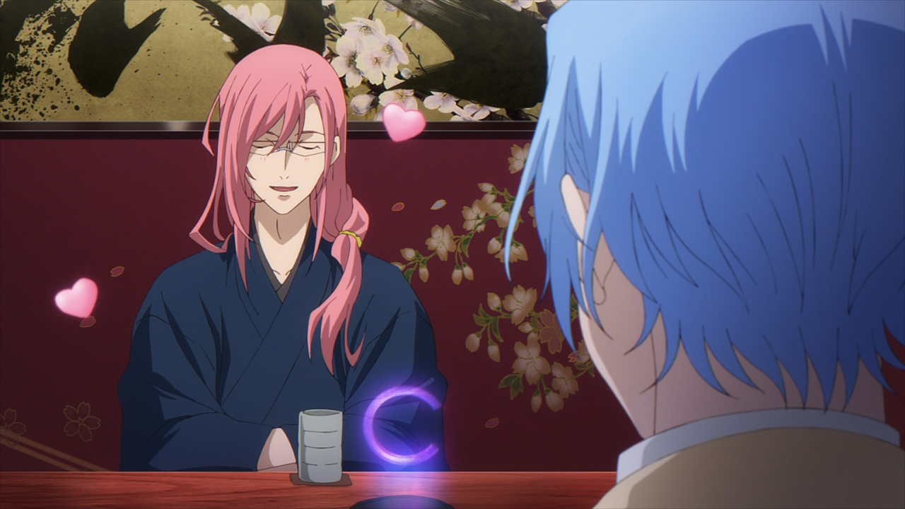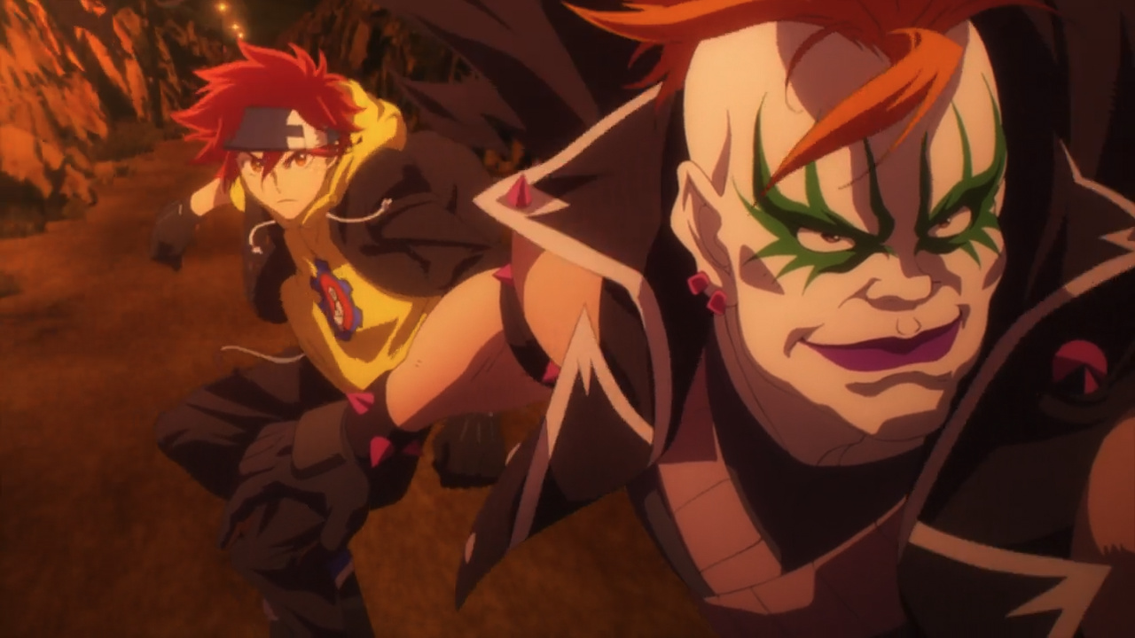 This first episode doesn’t ease you into the world of underground skateboarding. Instead, we begin with a ride or die (figuratively) race between Reki & Shadow (Miyake Kenta), a self-proclaimed S Community antagonist. S is the name of the underground playground, a repurposed old mine, that opens after hours for all those who can’t get enough of their chosen addiction. There you’ll find a dangerous and lawless racing track, a possible madman who watches from behind Dr. Evil-type retro screens, an AI skateboarder (what?) named Cherry Blossom (Midorikawa Hikaru), and a range of personalities that have yet to be introduced. Does anyone else feel like we’re watching the anime version of the ‘Beach’? (If you know, you know).