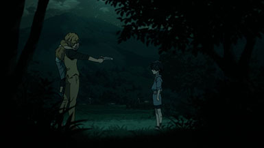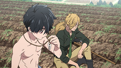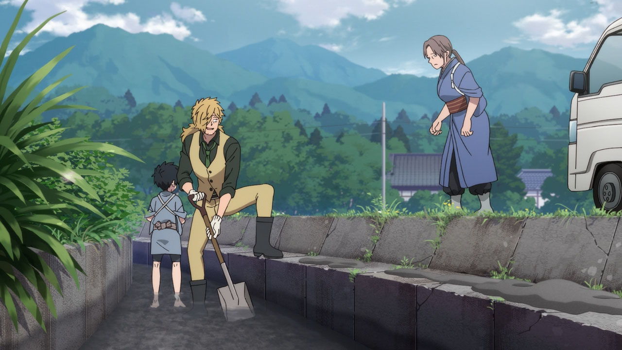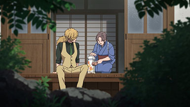 The first episode also introduces us to Inugami Kohachi (Suwabe Junichi), a detective of all things occult. He comes into town from Tokyo and boards at the small inn during his time in the village. He’s told by the innkeeper, Kabane’s aunt, that there’s a creature in the town terrorizing and ravaging the livestock and other local animals and she’d like to get rid of it before the larger community finds out.
