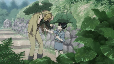 As I mentioned earlier, there are darker underlying tones to the series including bullying, emotional abuse, physical abuse, child labor, and potentially more to come… Dorotabo (Kabane) is our young victim. Battered and abused, he knows nothing of kindness. For as long as he can remember, he’s been told that he was abandoned by his parents and unwanted. With only a cruel aunt and cousin Yataro to ‘care’ for him, he slaves away and works the land of his estranged family’s small-time country inn, and is named after the stench he emits from being covered in manure after working all day.