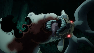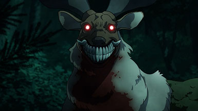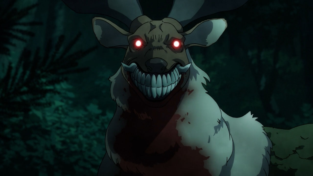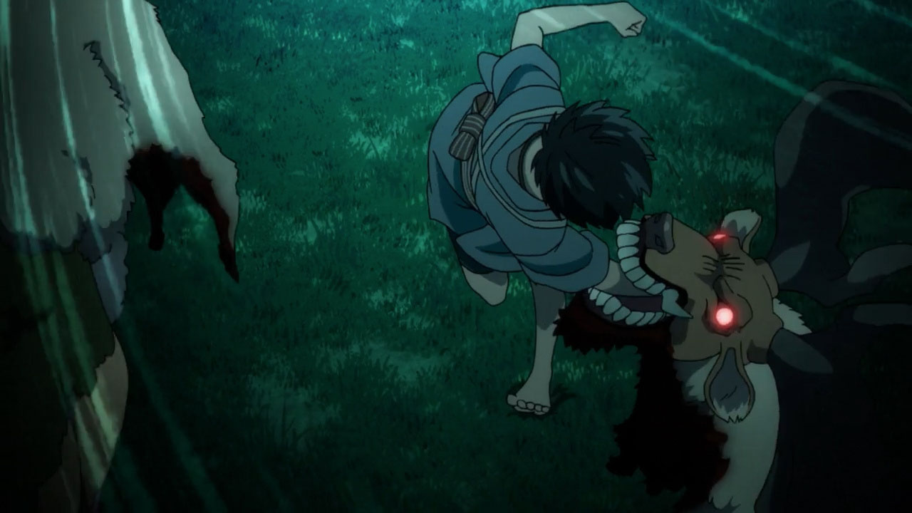 I felt indifferent about Kabane being “abused”. Maybe because of how indifferent the character himself acted toward it all as his eyes felt pretty unemotional through most of the episode(sans a particular moment). I was pretty amazed how well he fought off the demon dog and ripped the head of the deer off. Made me think he was pretty cool, more than anything.