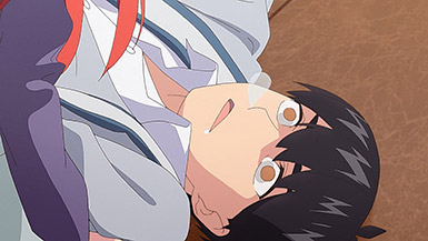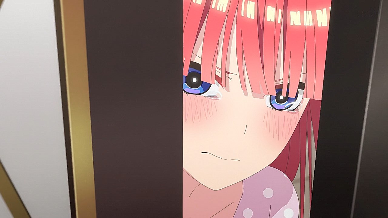 We also get some development on Fuutarou’s end as he runs himself ragged to get the Nakano sisters back on track. Much of the episode explores his point-of-view as he sees his efforts to reach them to be fruitless if he spends more time trying to get them to succeed in school than build a bridge between the sisters to maintain a better relationship with each other. But his efforts as a workhorse end up in his favor as his desperation to make the situation right lands him an invitation to Nino’s room.