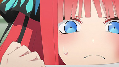 It seems odd how disrespectful she is given how it felt like the class trip would have helped rehabilitate Fuutarou’s image in Nino’s eyes. But apparently, at some point, she ended up relapsing and started to see him as an obstacle between him and his sisters, especially with how committed her sworn rival Miku dotes on him. By currying favor with Fuutarou as her favorite tutor, now any measure to get Nino to study will be seen by her as Fuutarou trying to gang up against her.