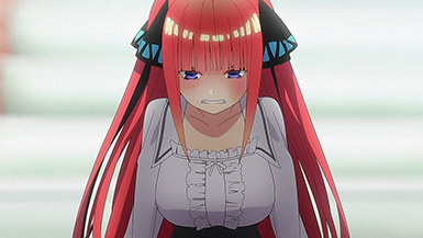 You wouldn’t really know this though with how the inciting incident explodes. At first, it’s just Nino aiming to butt heads with Miku, and actively taking measures to get under her skin. But when she continues her trend of disrespecting Fuutarou for his efforts to get them to use the study guide he exhausted himself to write, that’s when the straw broke the camel’s back.