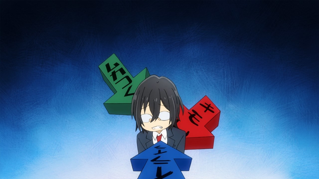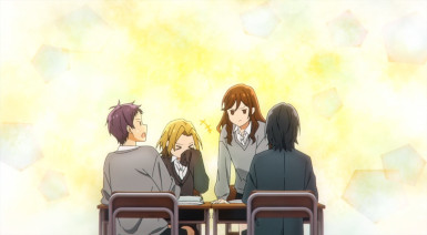 Folks who aren’t socially awkward might look at Izumi in the first half of this episode and think “cry me a river” (or worse, “man up”). And that’s understandable, because this is one of those cases where empathy really isn’t adequate to the job. There’s a doubt that never goes away, and we see it in Izumi’s suspicion of those who appear to be his friends. Seriously, how could anyone willingly be my friend? It’s a question kids like Miyamura often ask themselves, and kids not like Miyamura can never really understand the power of.
