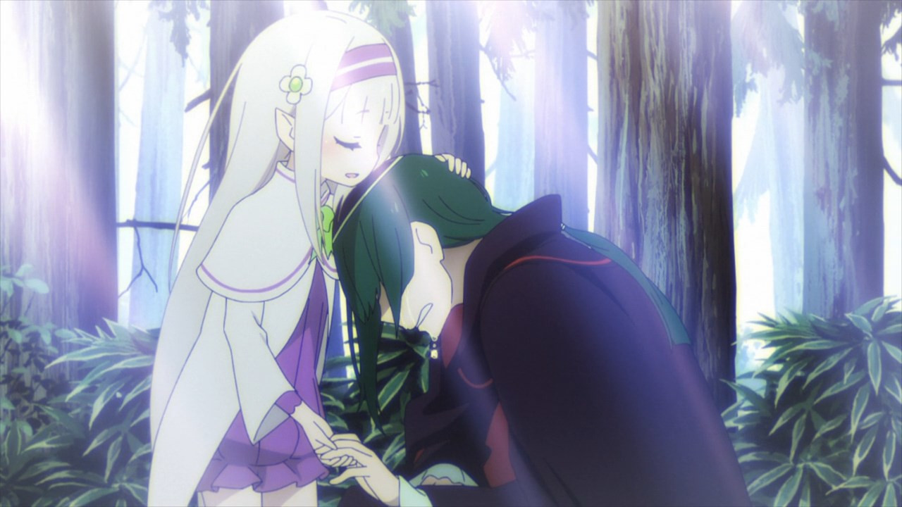 Part of what makes what’s to come so damn interesting as well is the cliffhanger appearance of none other than Echidna’s Archbishop Regulus. Why the hell he of all people would be involved with Emilia’s trauma is anyone’s guess, but pretty easy to assume it has to do either with the elves watching the seal or the seal itself. It’s not like one particular witch has the apparent form of an Emilia-like elf and an origin wholly unknown. Oh no siree. Yes, I’m going to tease like mad and enjoy every last moment of it, even if the extent of what’s revealed this season is going to remain firmly up in the air.