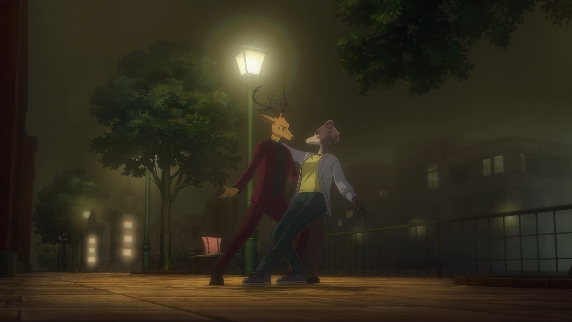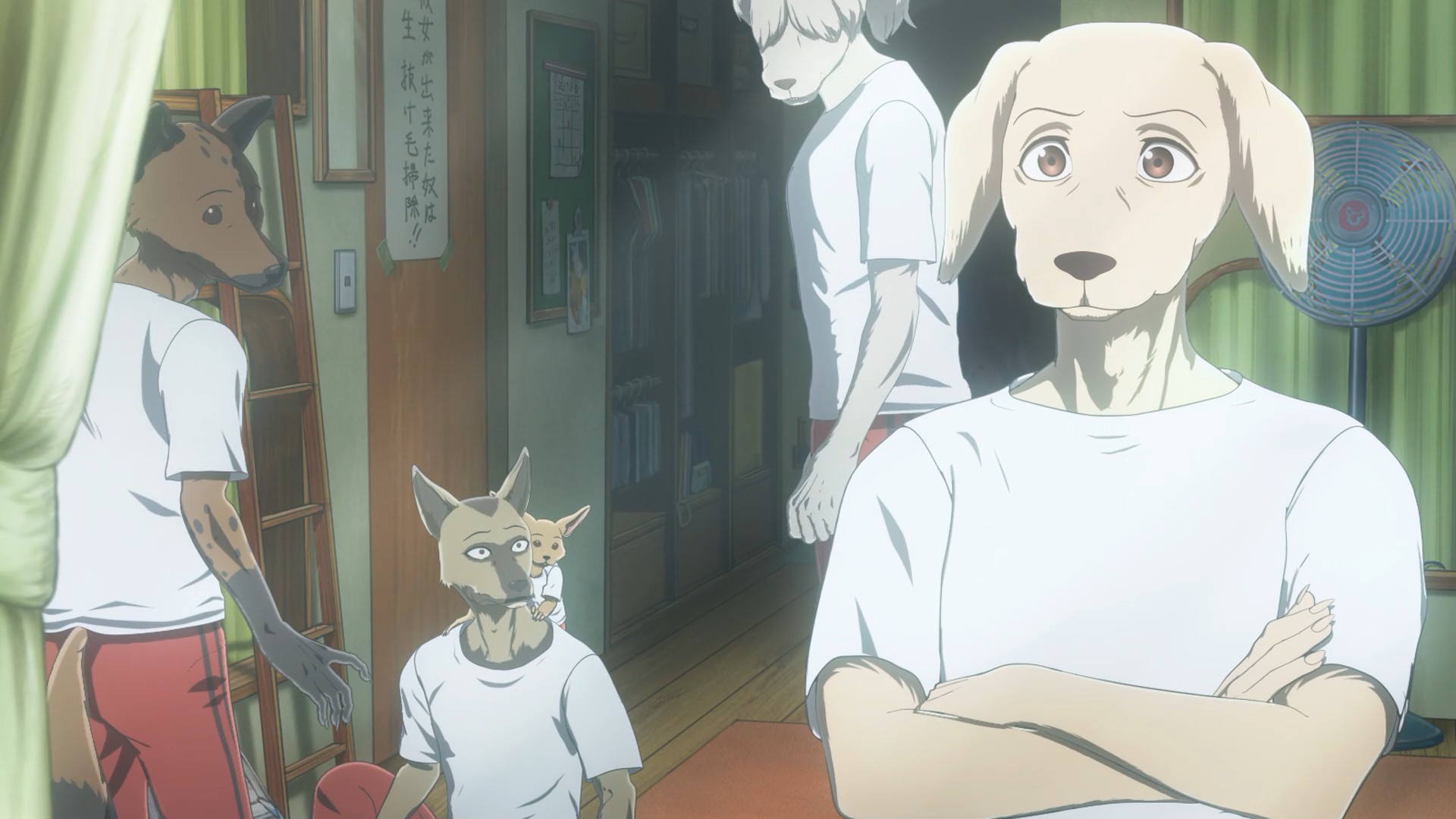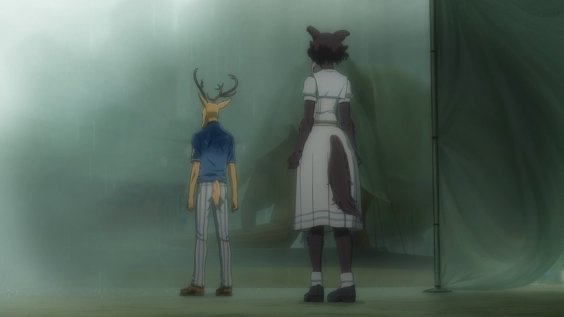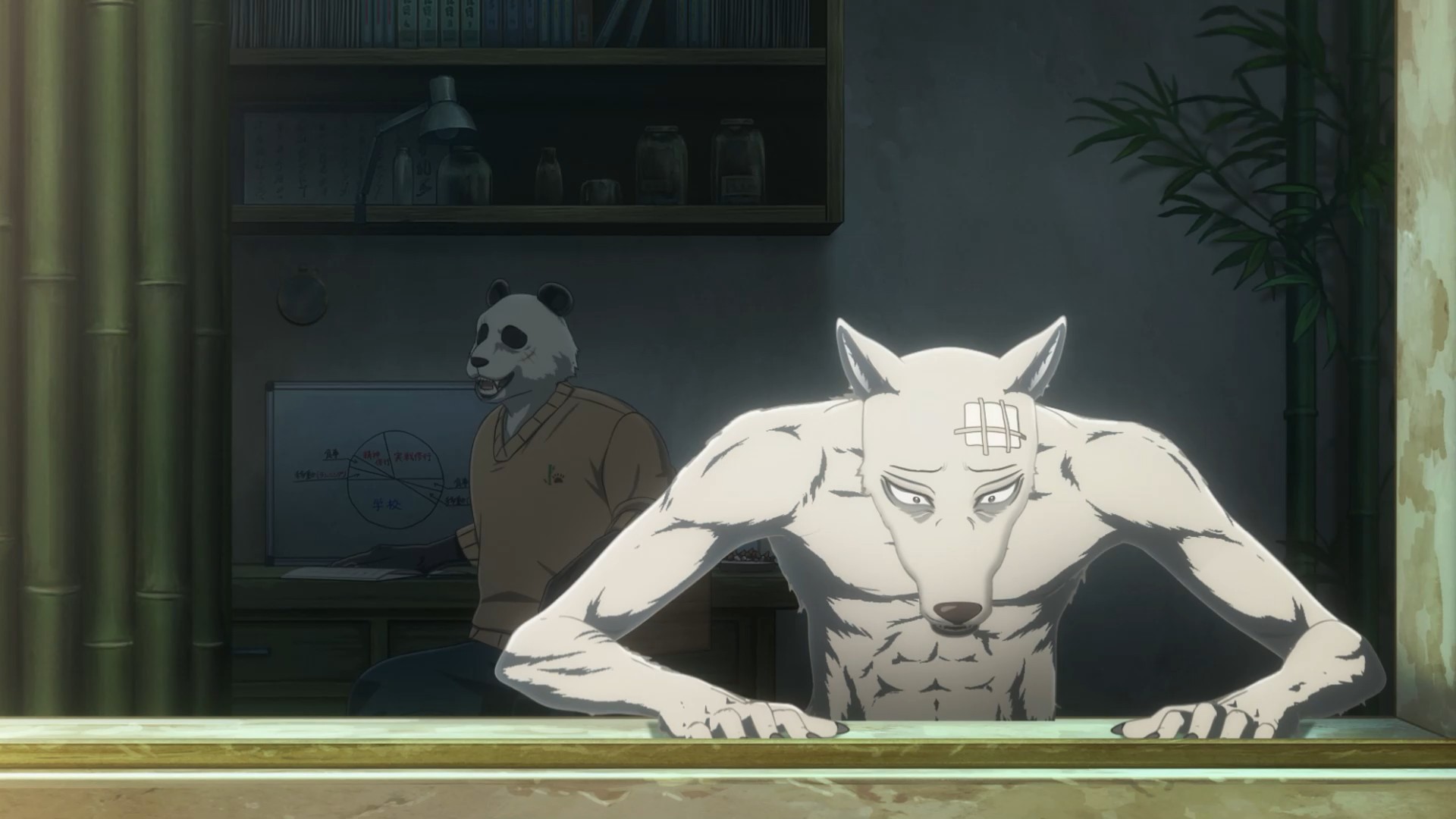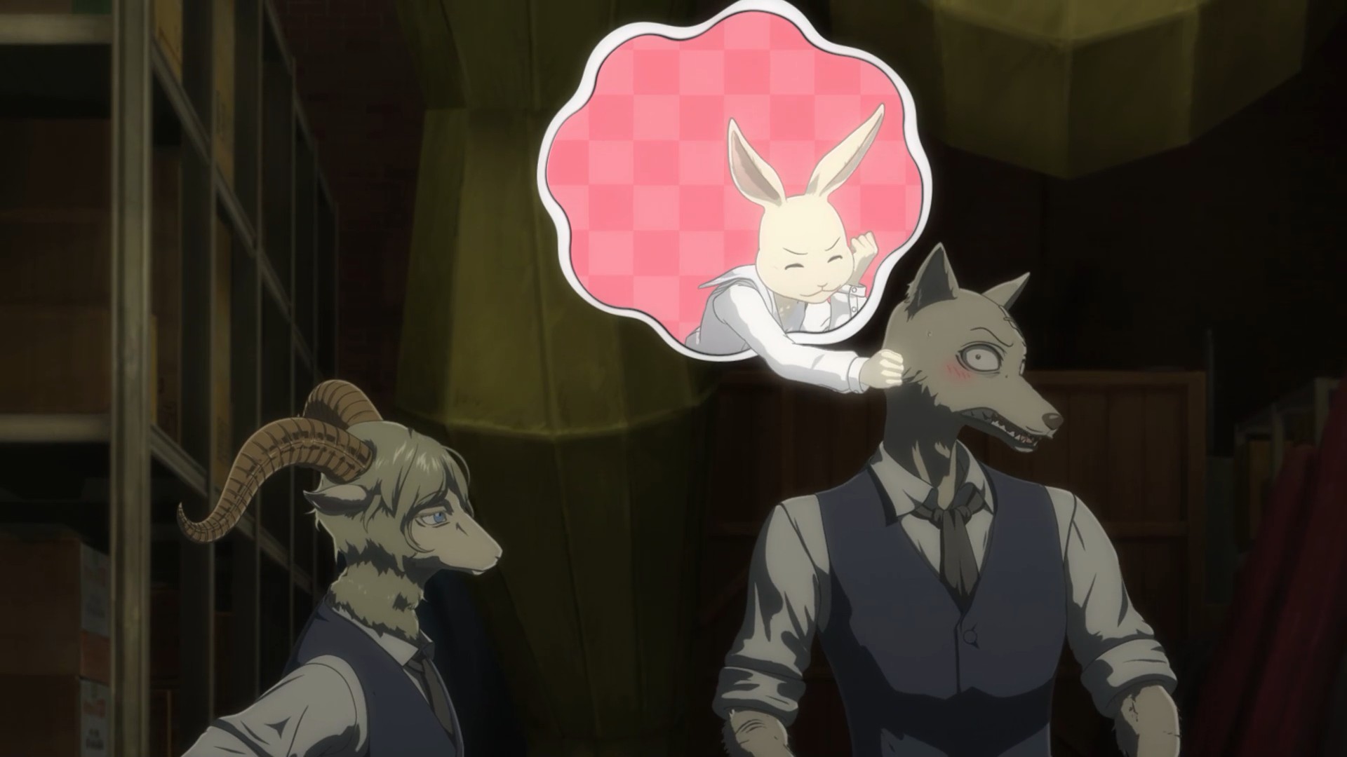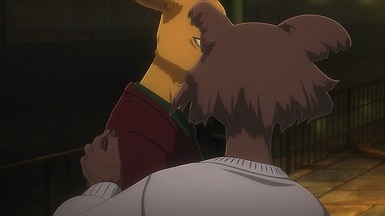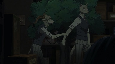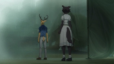I suppose the same could be said of Louis. He’s only a little older but superficially a lot more mature, yet he’s kind of in the same boat. I think the difference is that Legosi wants to live a quiet life and turmoil has a talent for finding him, while Louis actively goes out and searches for it. The irony here is surely intentional – temperamentally Louis is the carnivore and Legosi the herbivore, and you get the sense each would be happier if they’d been born that way. The symbolism here runs deep, all the way to Louis forcing himself to eat meat even as it sickens him, while Legosi refuses to eat it even as his body craves it.