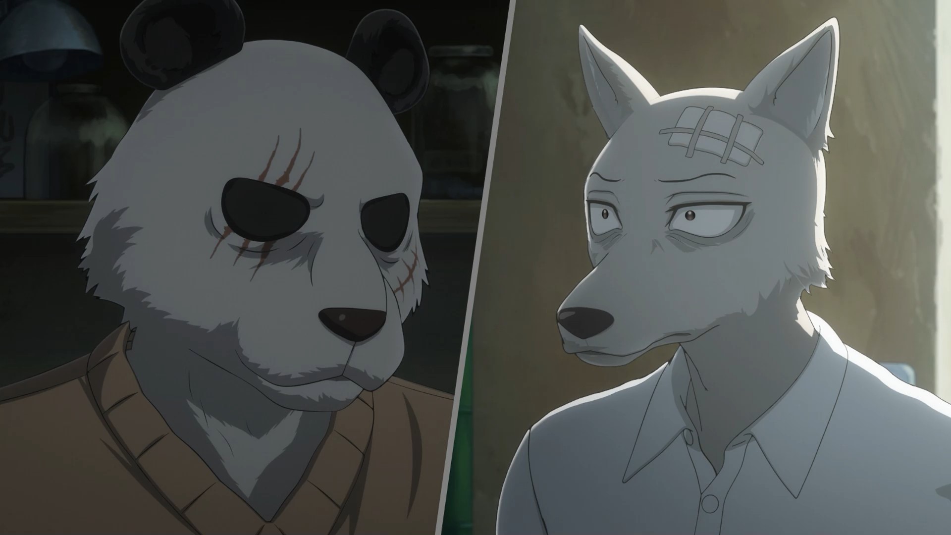 As for Legosi, he’s managed to convince Gouhin to mentor him, but the panda is no easy master. It comes as a great surprise to Jack to see Legosi return to the dorms (and to me, at least this soon), and to everyone to see his appearance. Gouhin was rather unsparing with that scythe, leaving Legosi looking almost unrecognizable (Juno is a fan, so who knows what the hell she wants right now – definitely not her). Legosi realizes that Gouhin was right in his advice to return to the club – if he’s not there to protect the members, who will?