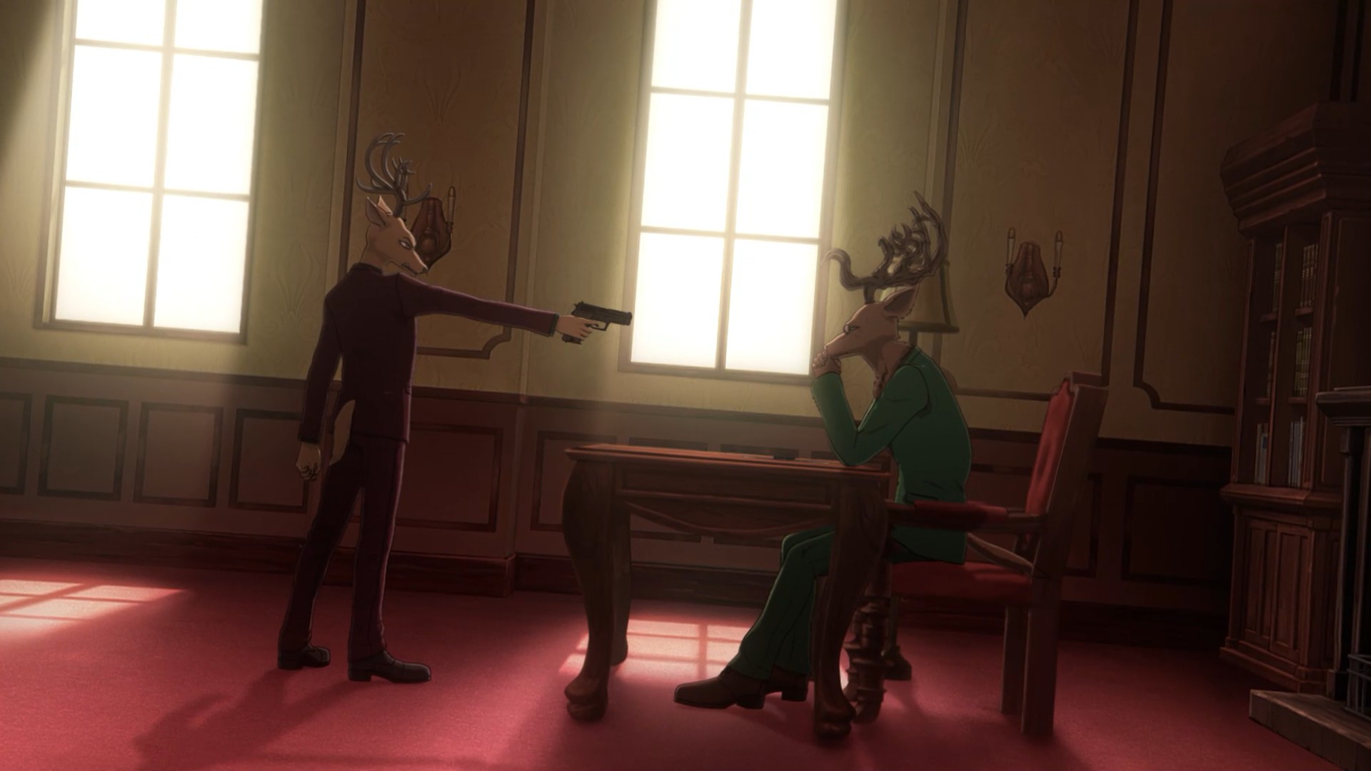 Lastly it’s back to Louis, who thematically speaking has become just as central to the narrative as Legosi. This final scene almost makes it feel as if the intro with Juno was a kind of last farewell to the old Louis, as we find him demanding that his stepfather sign the papers allowing him to withdraw from Cherryton. And meeting with resistance, pulling a gun on him – I don’t think he’d use it, but it’s still shocking even given the emotional distance between them. I suppose at the least, this will be a barometer of just how far Louis has descended into the dark side.