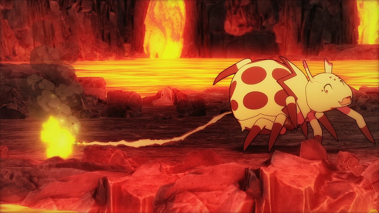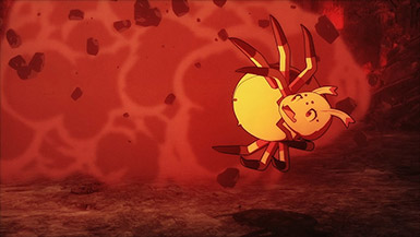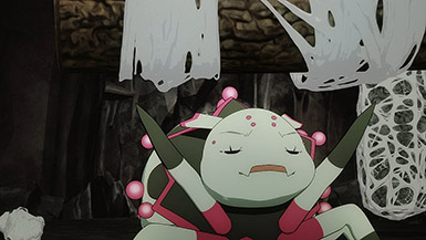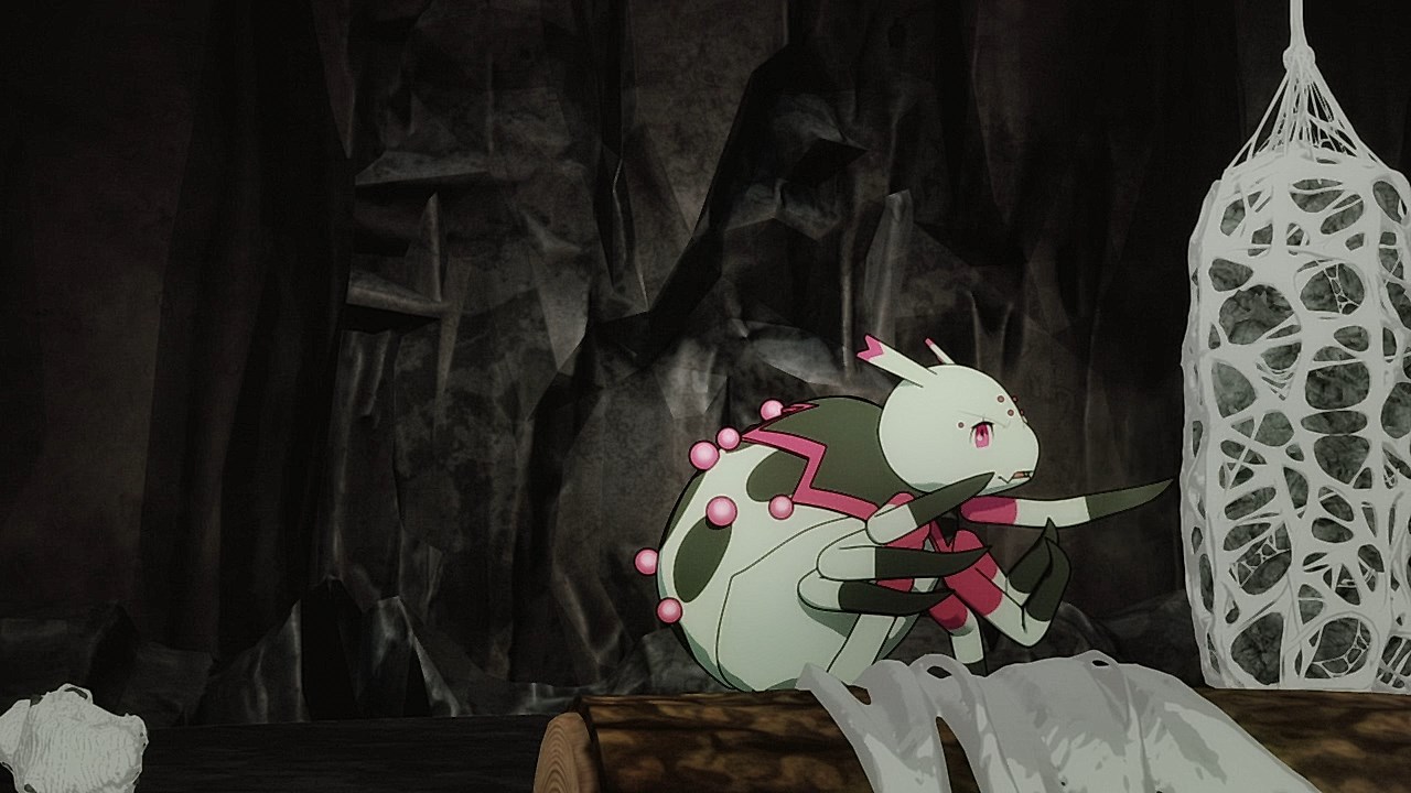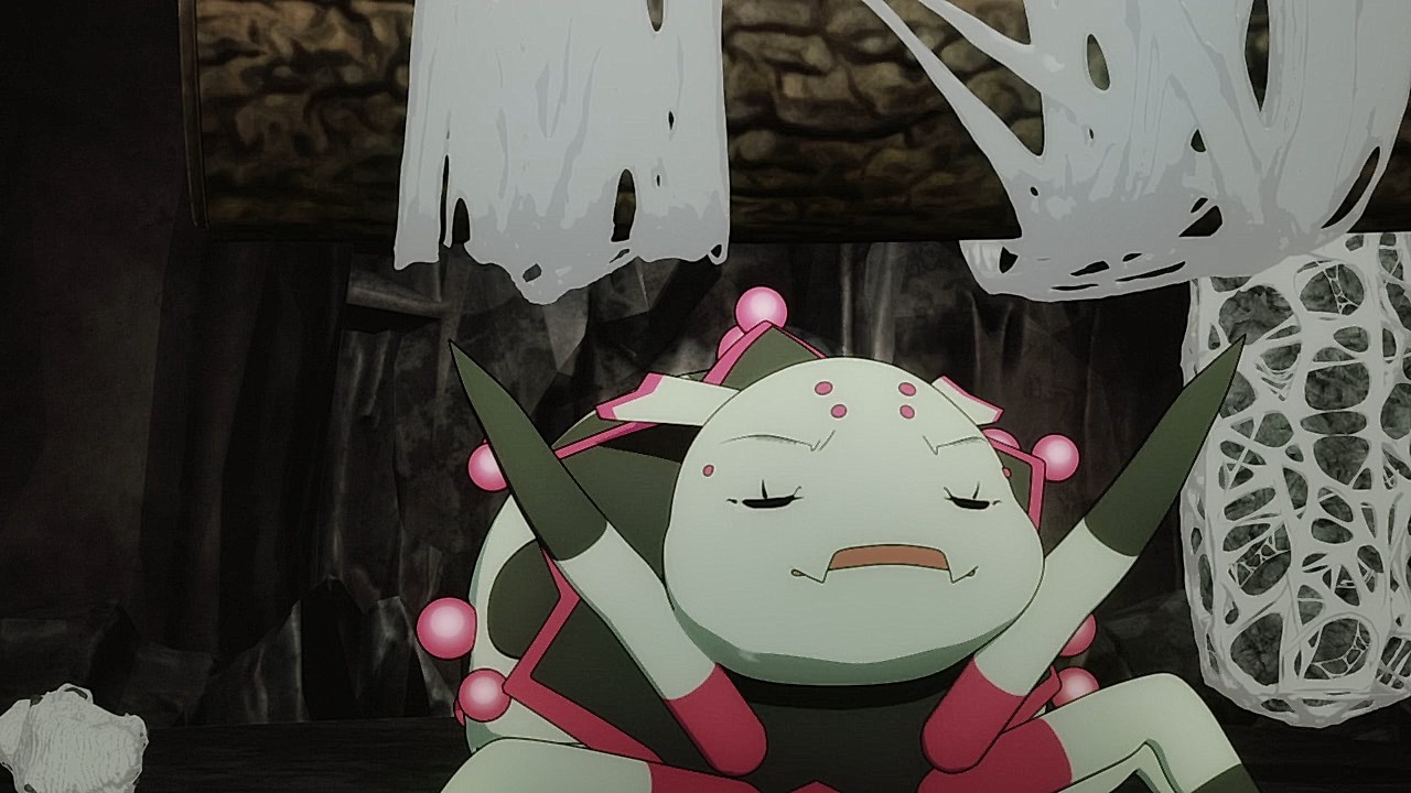 Kumo Desu ga, Nani ka’s fifth episode continues Kumoko’s journey through the cavern as she faces off against the newer fearsome adversaries that greet her in the magma cavern. But whereas the last episode was purely Kumoko, they added a little welcome tidbit of information from the human world that calls attention to Kumoko’s current journey.