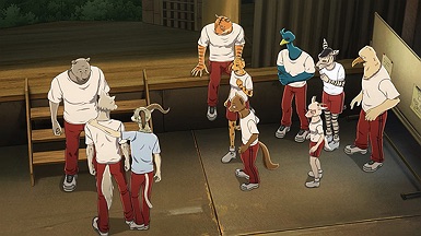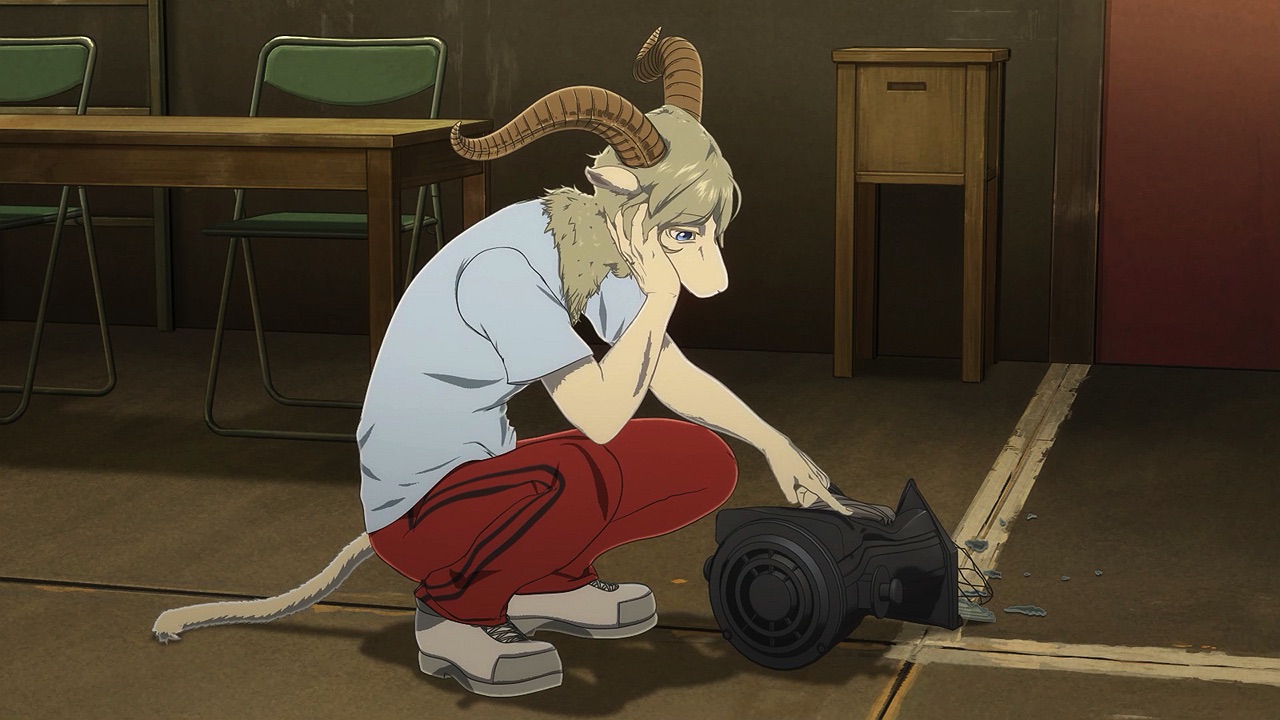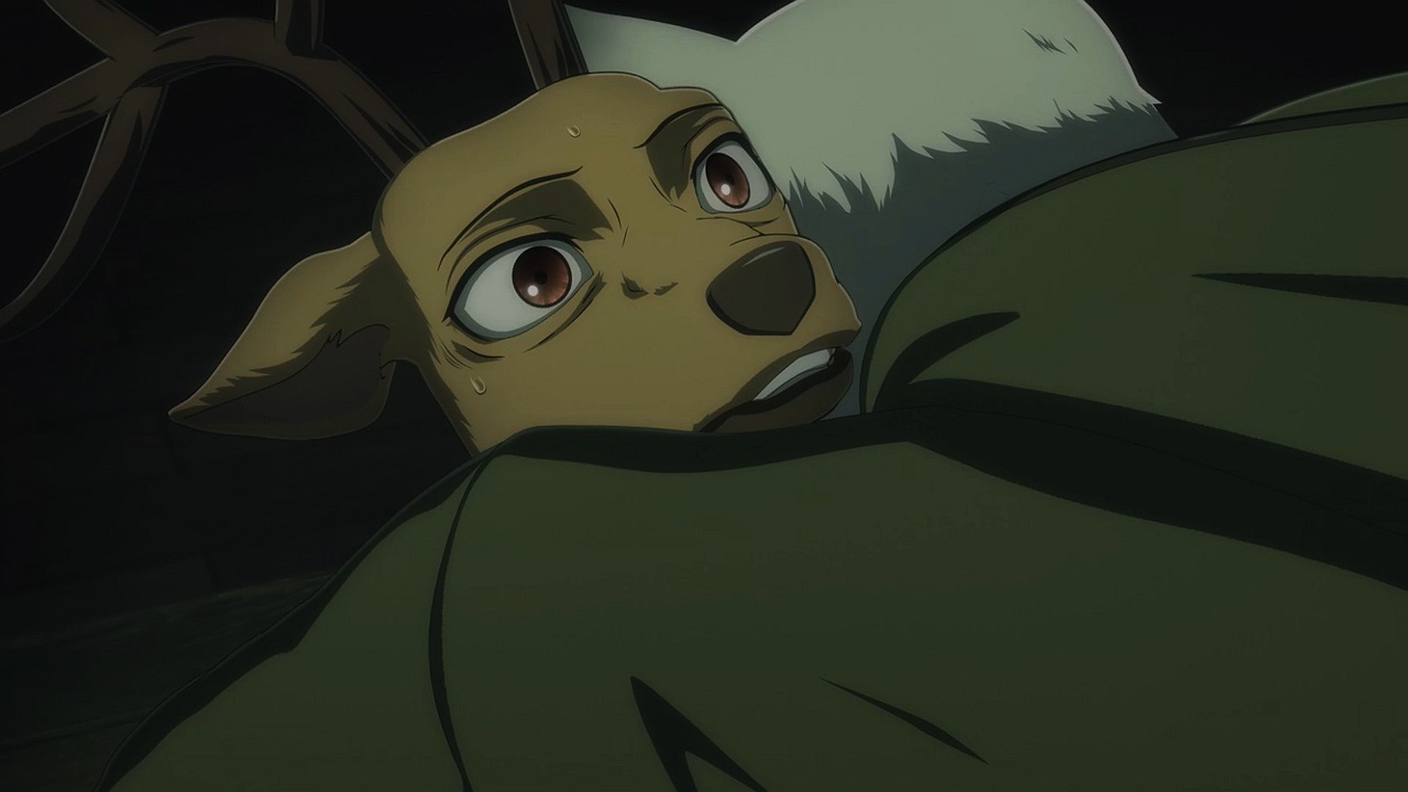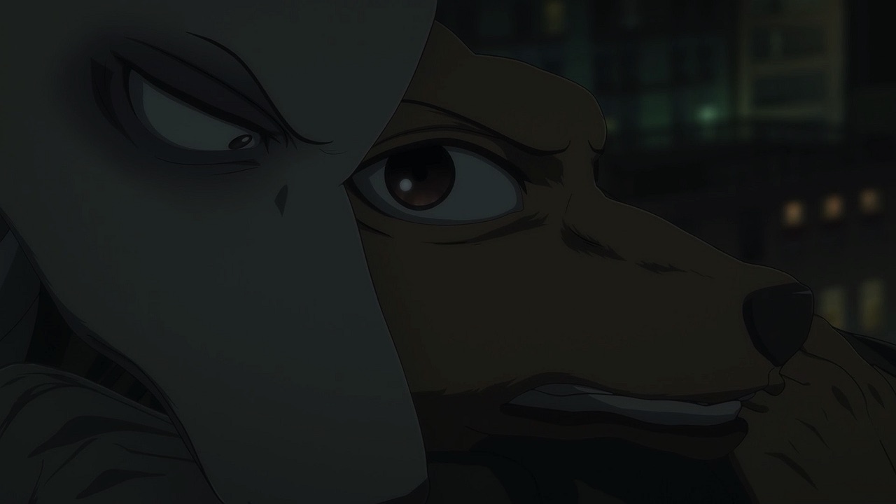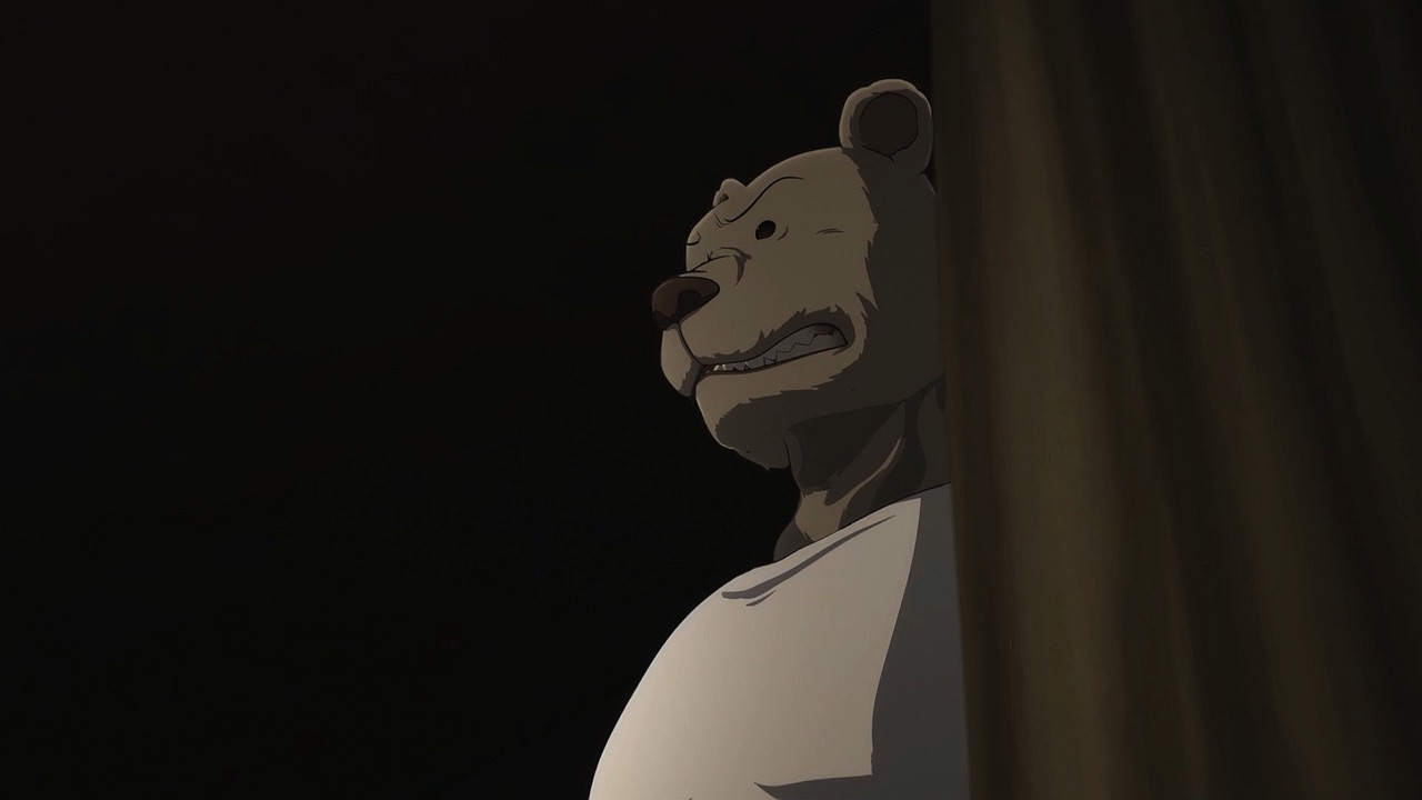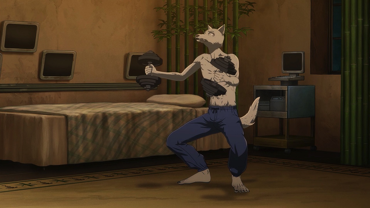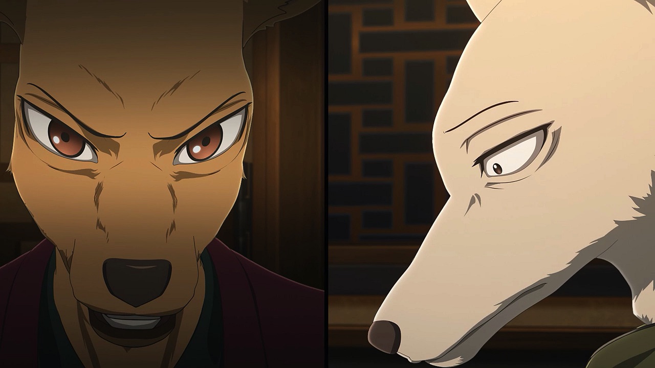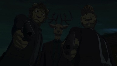 The reunion between Legosi and Louis, long in coming, certainly starts out in rough fashion. Wrongly suspected of being the one stealing the gang’s illegal ivory, Legosi gets roughed up by the pride as Louis looks on, shocked but keeping his poker face. Legosi is smart enough not to blow Louis’ cover, but he can’t keep his tail from wagging even as he’s getting his ass kicked, he’s so thrilled to see Louis-sempai. Whether Louis is deserving of the adoration Legosi holds for him is debatable, but it’s so authentically Legosi. He’s an incredibly pure soul, utterly genuine, and that someone like him can exist in this series’ universe somehow gives you a sense of hope for its world as a whole.