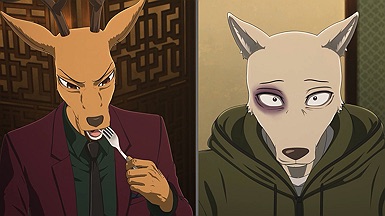Make no mistake, Riz is a big problem literally and figuratively, but Legosi seems to me to be the one to handle it. Riz openly baits Legosi in front of the others, and Legosi allows it to happen – it’s only an intervention by Pina of all people that defuses an incident that was making Legosi look very bad. But Riz’ facade is just that, a facade, and he doesn’t have the restraint to sit idly by knowing there are two students out there who have the power to ruin him if they figure out how. He’ll force a confrontation whether Legosi is ready for it or not, and – ominously – I could even see him going after Pina as a means of killing two herbivores birds with one stone.