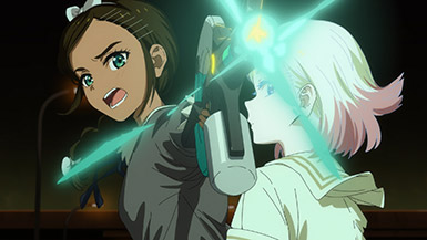 We discover that Neiru is actually a test tube baby, with her parents being selected as donors by an organisation named Plati to heighten the prospects of siring a genius child. And we can see that it clearly worked. There’s no disputing the fact Neiru is a genius. However, there’s more than meets the eye when it comes to Plati as an organisation, and the girls discover this when they’re introduced to Kotobuki – Neiru’s dear friend who’s been left on life support following an unsuccessful self-conducted experiment of a mysterious nature.