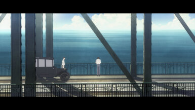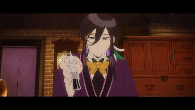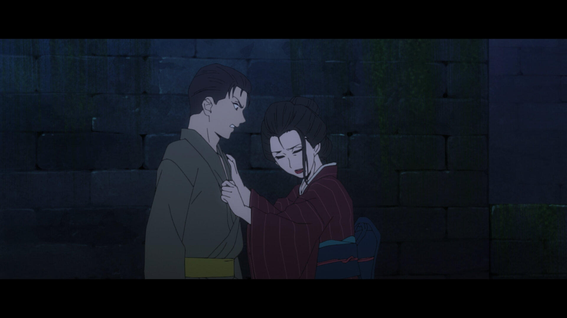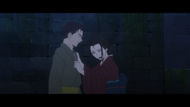 Two customers for this blood product are a vampire couple. The man insists that they consume this product so they can stop hiding. The woman is worried about the changes in the man since taking the new product and wants them simply to be happy together. She compares them to Okaru and Kanpei, the ill-fated lovers in the Kabuki play, Chushingura. In Chushingura, Okaru dies upon killing the person who murdered Kanpei, her lover, foreshadowing the end that the vampire couple will meet.