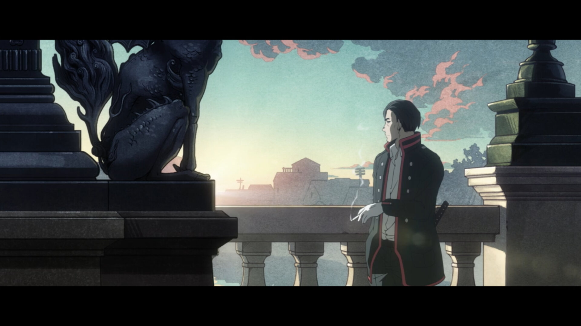 Yamagami belongs to the Unranked and is unhappy that Maeda, his former peer at Ichigaya (the headquarters for the Imperial Army), is now his superior. This sets up a tension between Yamagami and Maeda that seems as if it will be a recurring theme. Kurusu, on the other hand, is distinguished as being Japan’s sole Rank A vampire. He appears to struggle the most with being a vampire and member of Code Zero, showing reluctance to drink blood (quite understandably), wishing for death, and hesitating to kill fellow vampires (Suwa ends up doing the job for him). Maeda, meanwhile, has a hidden sentimental side in him, mourning the loss of his love, going so far as to place flowers representing eternal memory in honor of her. Each of these men has their unique vulnerabilities that could influence how they carry out Code Zero missions. Kurusu might sympathize more with the vampires they are hunting, Maeda might seek revenge or sympathize with the vampires (depending on the backstory with how his love died), and Yamagami might take drastic actions to prove himself.
