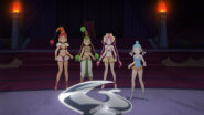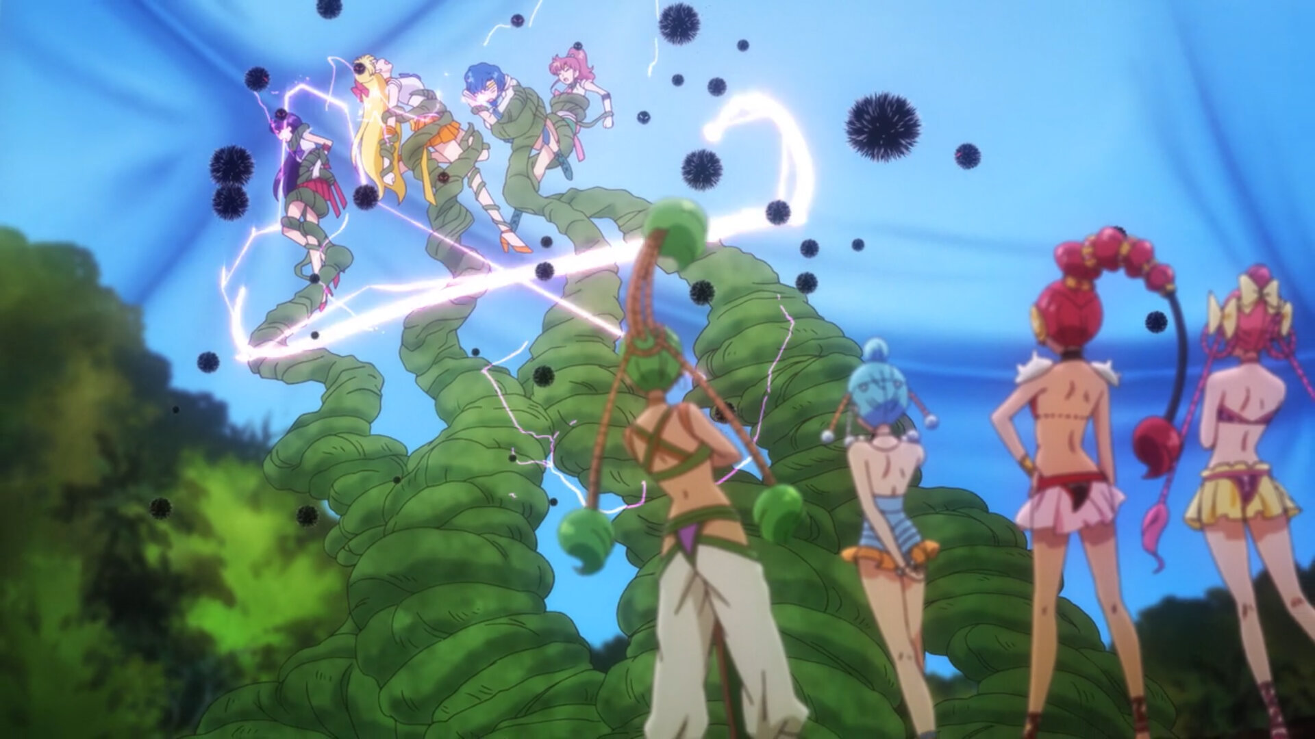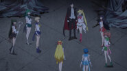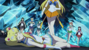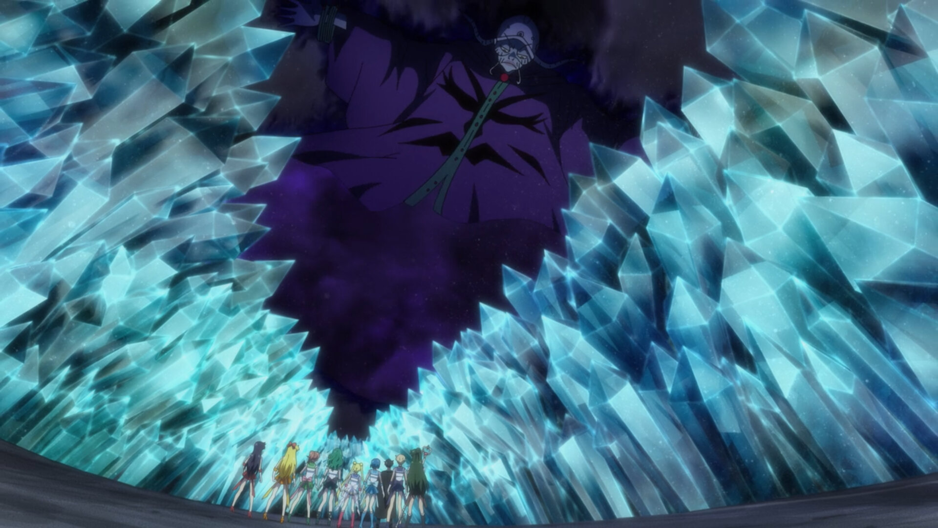 The full senshi (“Sailor Guardian”) team re-unites again and successfully wards off the Amazoness Quartet’s Tama Arare (“Orb Hail”), Tama Hagane (“Steel Orb”), Tama Gusuri (“Medicine orb”), and Tama Sudere (“Orb Blinds”) attacks. The senshi blocked the Quartet’s attacks so quickly we didn’t see all the attacks’ abilities. While that exemplifies the sailor team’s prowess, it would have been interesting to see more of the Quartet’s powers. However, the focus of this series is the character development and storyline more so than battles, so it’s not surprising the fights are short-lived.