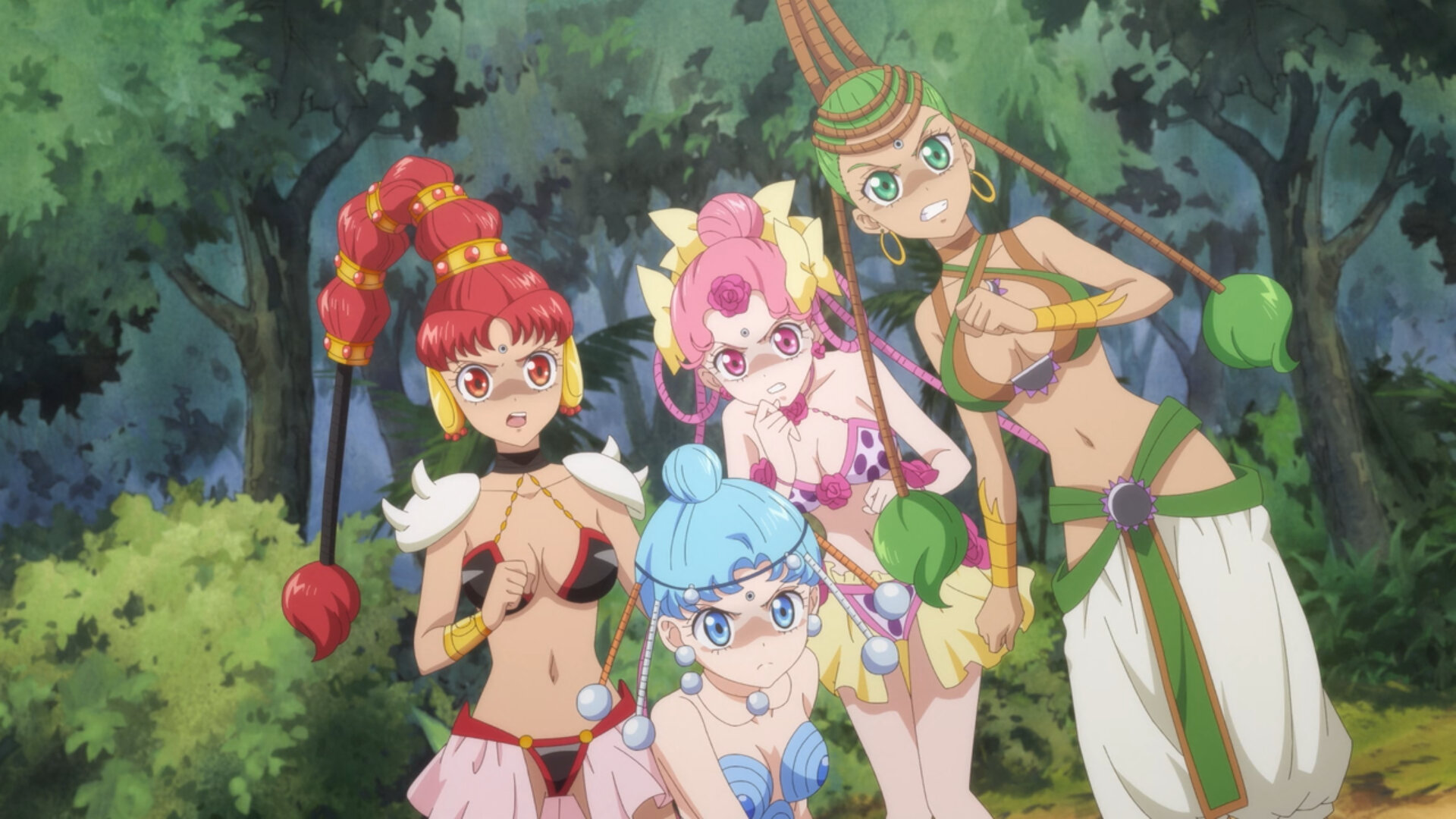 Helios rescues Usagi and Mamo-chan, taking them to Elysion. In Greek mythology, Helios is a flying-chariot riding sun god. Elysion may be based off of Elysium, which in certain Greek myths is a sort of Heaven. The Maenads they meet are named after often drunk companions of the Greek god of wine and orgies. I’m not sure why the Maenads were chosen as namesakes since it doesn’t fit with the purity of maidens tasked with caring for the shrine. Maybe they have an off-screen after work life that takes after their hard-partying namesakes.