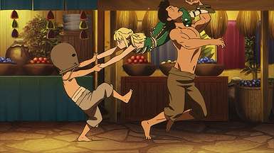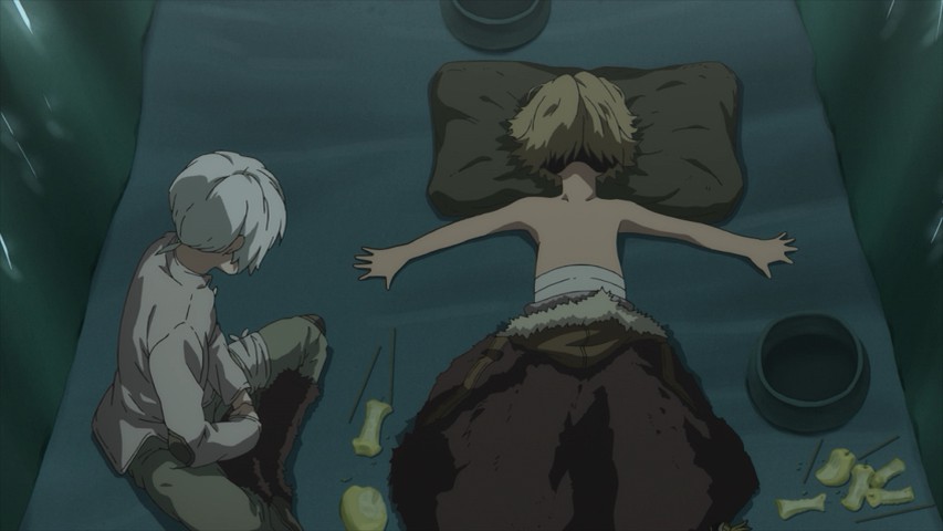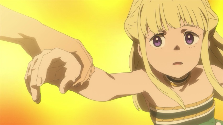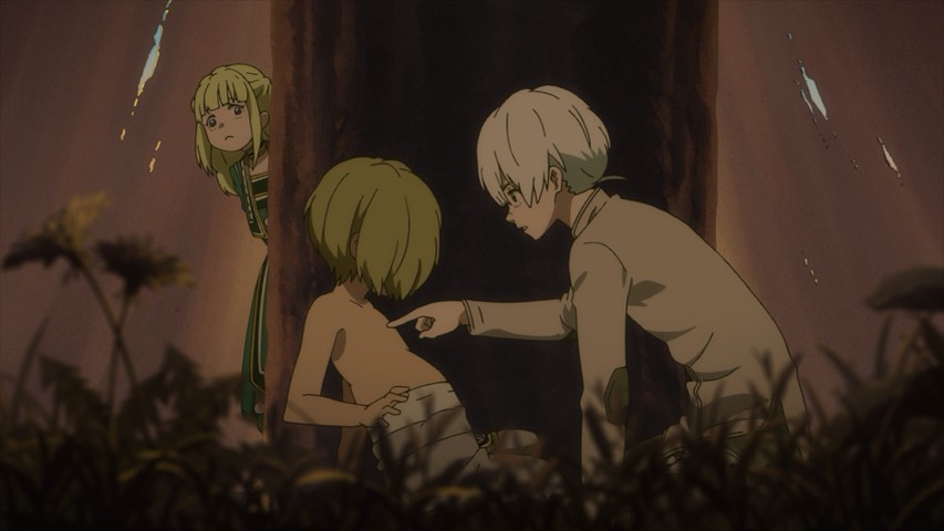 Here follows yet another truly fantastic scene, as Gugu desperately prays for Fushi to return as soon as possible. Rean and Gugu likewise have a great chemistry, and this is a brilliant juxtaposition of comedy and pathos. Rean is a classic poor little rich girl, and even the smitten Gugu can’t help but he irritated by her complaints in life. Her “terrible wound” is a tiny almost-healed scar on her arm. Her complaints with her home are that she gets too much food, too much attention and is never alone. How could someone in Gugu’s place not be aghast to listen to all this? He’s got enough sense to realize she’s being kind of an idiot but not enough to keep quiet about it.