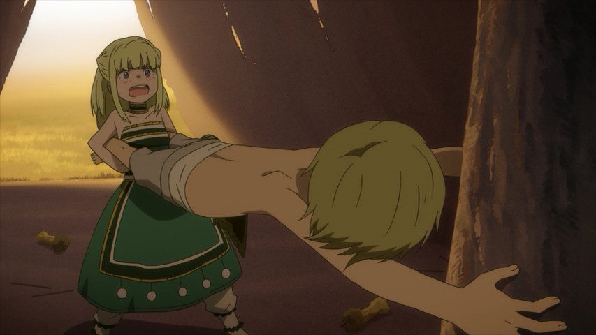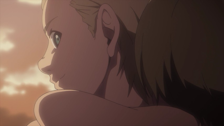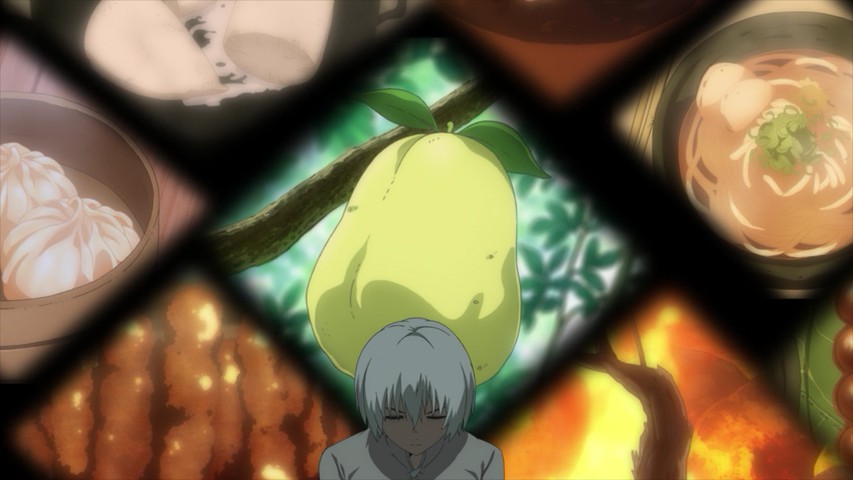 Watching these scenes with Fushi, Gugu (and later Rean) play out, you really get that sense of being prepped for heart surgery without an anaesthetic. What an incredible brother chemistry Gugu and Fushi have – there’s so much authenticity to these moments, especially given how bizarre the situation is. Not for the first time I’m reminded a bit of Made in Abyss, which has that same quality in spades. Fushi is flashing some seriously useful new moves here (even if his creator isn’t impressed) – like creating food from thin air for the starving Gugu. Apparently the stronger an item stimulates Fushi – and facing starvation yourself is pretty visceral – the easier it is for him to recreate it.
