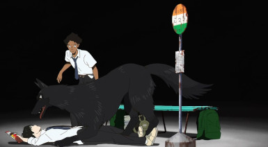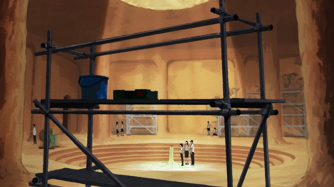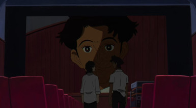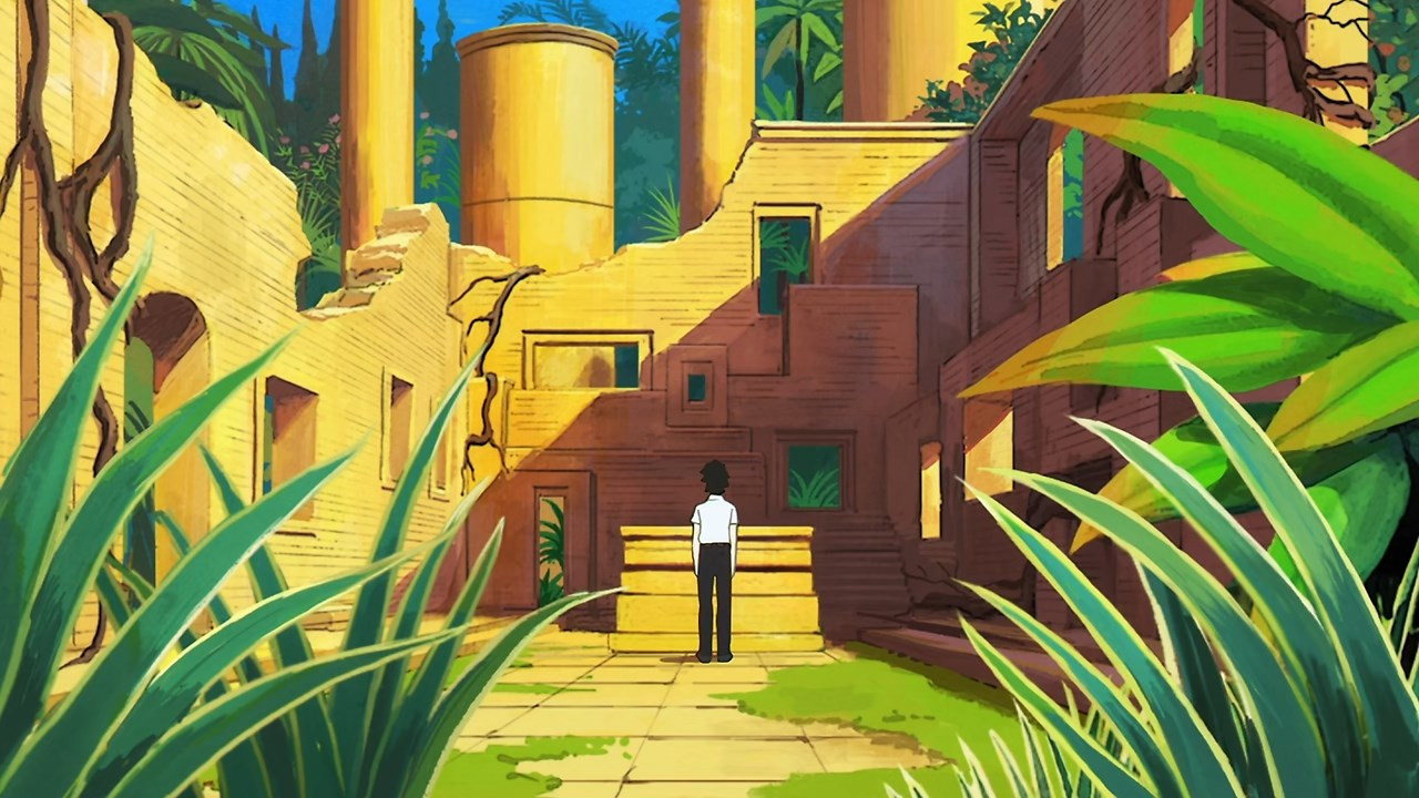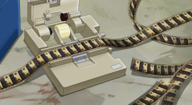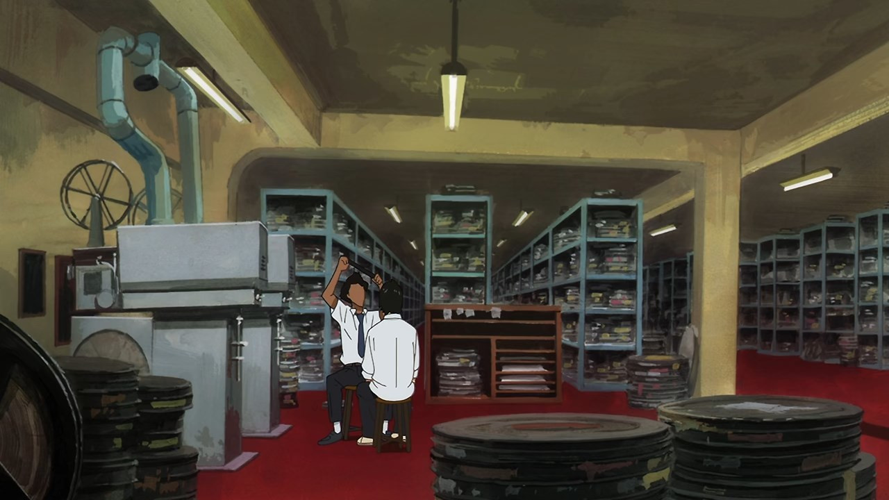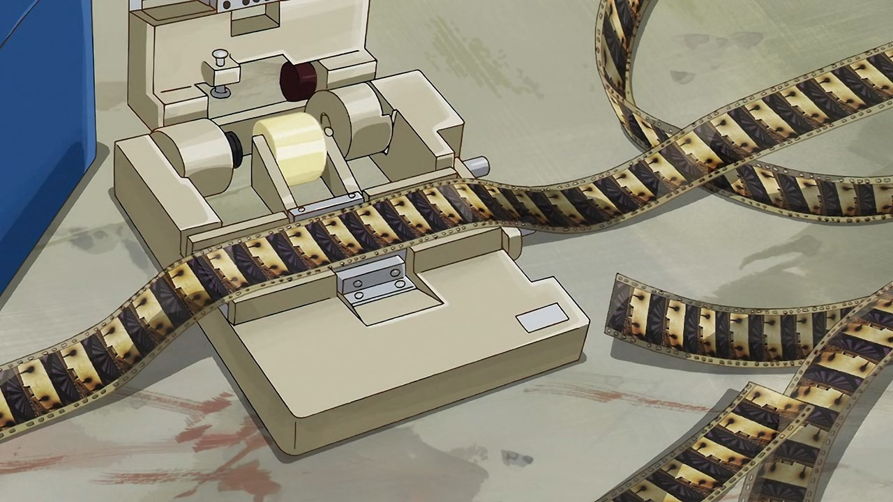 The current world is the most important so far, plot-wise. It’s a film world, to the extent that whatever Nagara sees gets put down on film (old-school celluloid) from his perspective. Raj (whose preternatural ability to master any technical problem is a bit of a writing crutch, if we’re honest) soon realizes that Nagara has to be present for things to move, and that all sorts of things are possible. Like a “director’s cut”, where he can combine the worlds of two reels onto one film. But while they can observe the past, they can’t change it – they can only change the future.