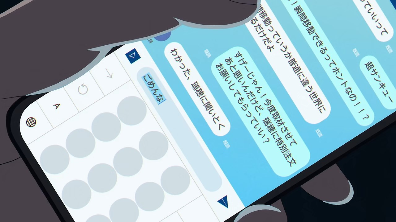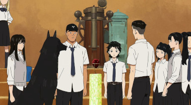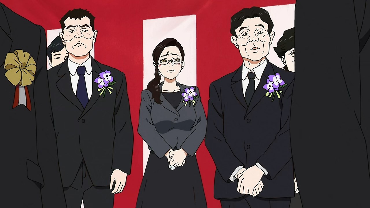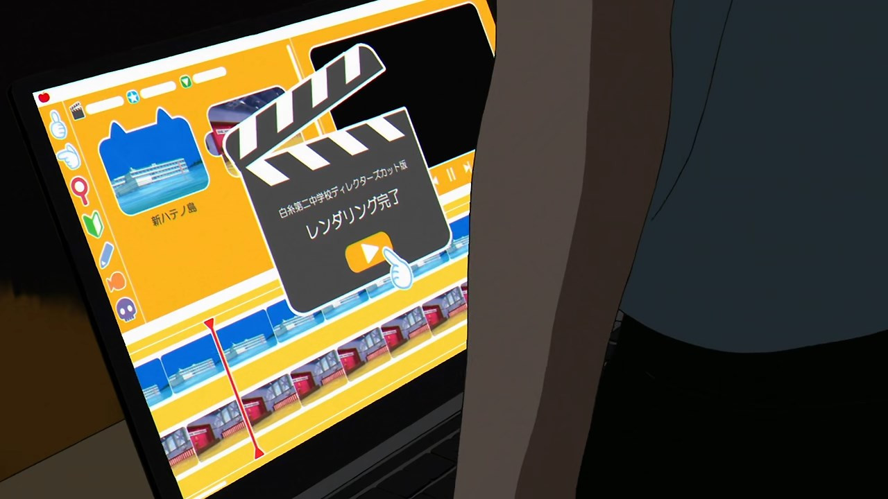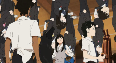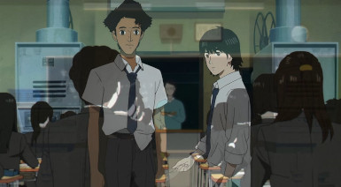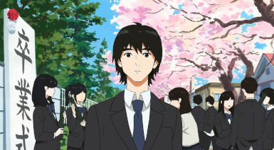 What this all builds up to is Raj and Nagara’s plan to try and splice everyone into the mildewed film of their middle school graduation that Nagara has restored by his magic touch. Hoshi reluctantly agrees to give this a shot and team up, despite his insistence that he knows what will happen. What happens is that everyone does wind up being transported to that place and time – except they can’t interact with anyone there. They’re copies, as Hoshi authoritatively declares – not the “chosen ones”. And what’s more, while the others see versions of themselves all Nozomi sees is her empty desk and a memorial in her name, which is creepy as hell.