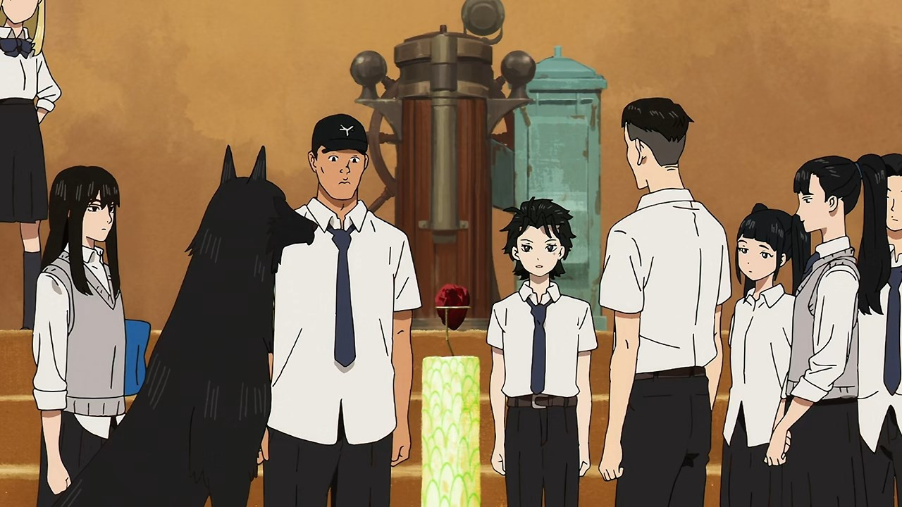 Another random element here is Yamada Kunihiko (checking off Tsuda Kenjirou’s legally mandated appearance in every series). He’s a student from the same middle school as the others. He’s a dog. And he’s 5,000 years old. Or he’s a massive bullshitter, one or the other. Kunihiko says he’s seen others try and get back to their original worlds and fail, though as he rightly points out that doesn’t imply a zero chance that someone else could succeed. For himself, though, Kunihiko says it’s too late. How does he know that, assuming it’s true? Honestly I’m not sure.