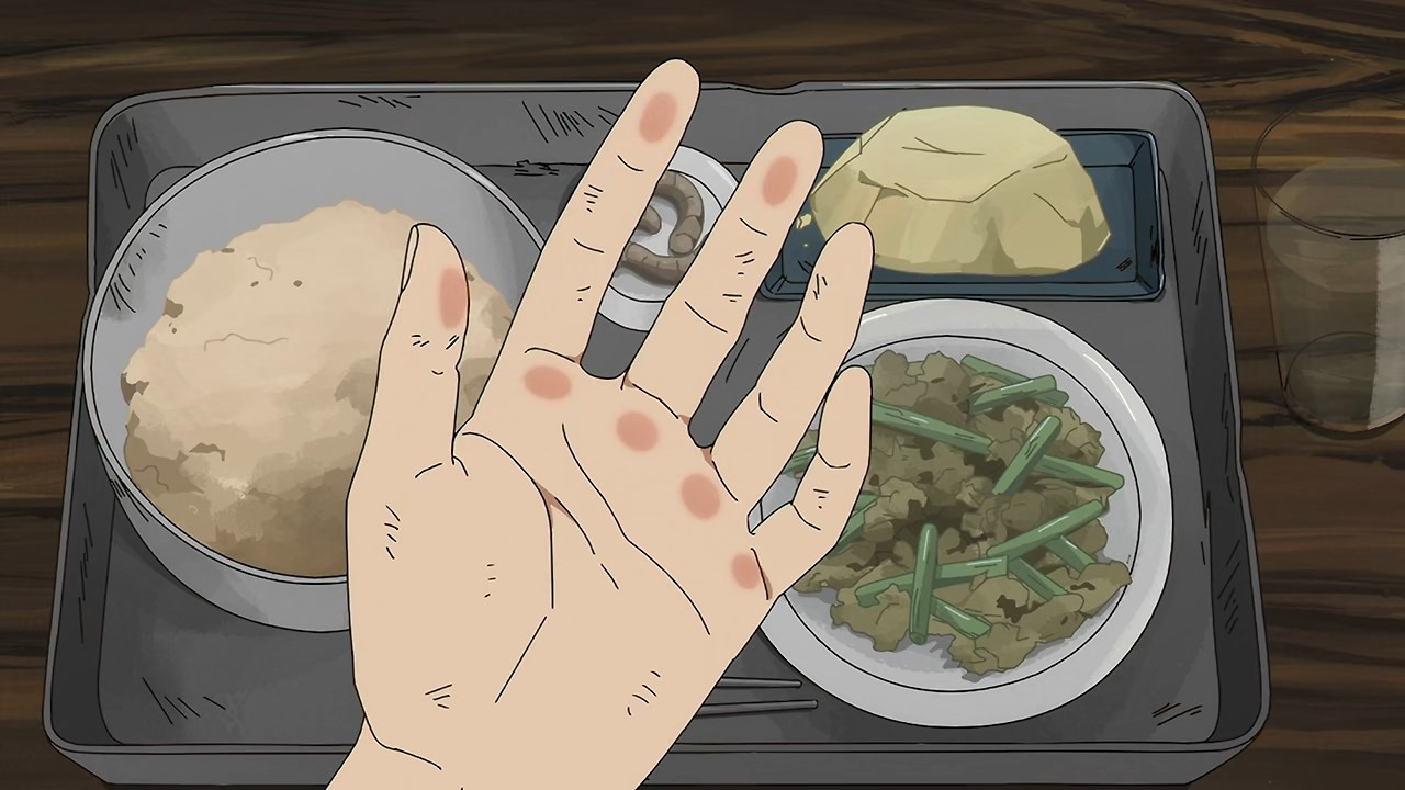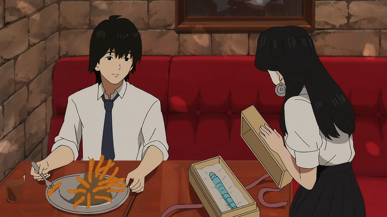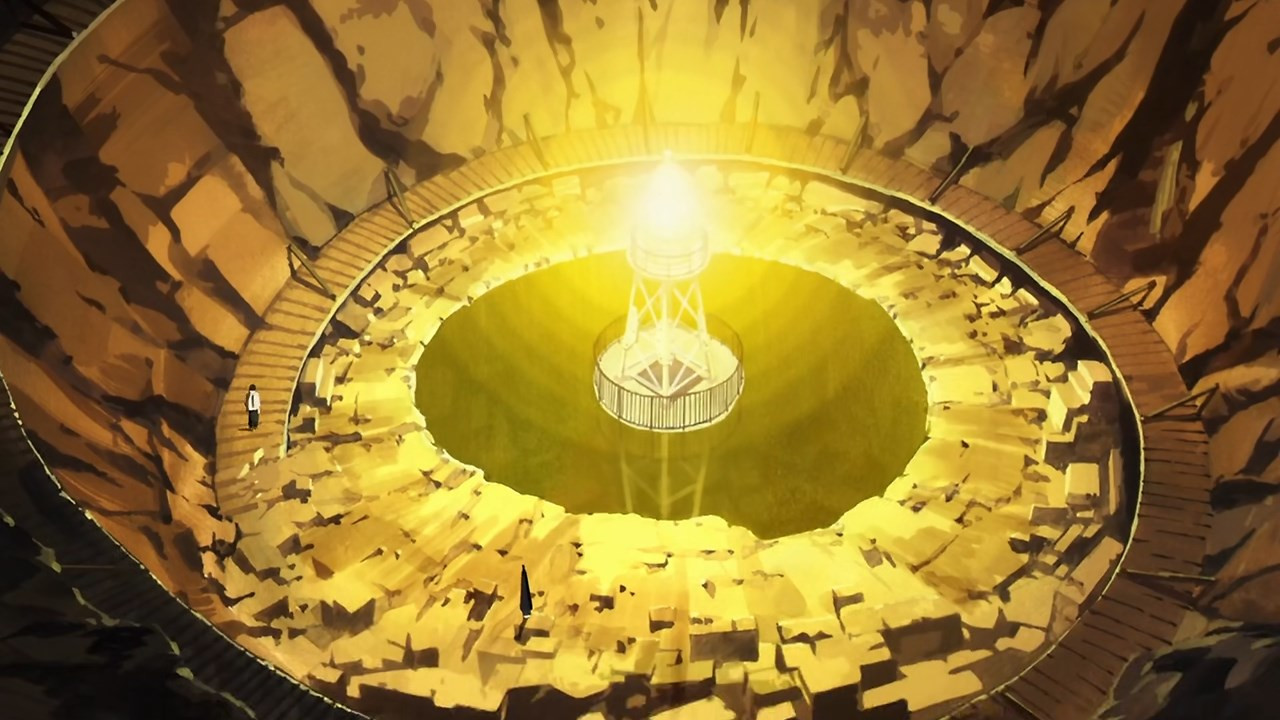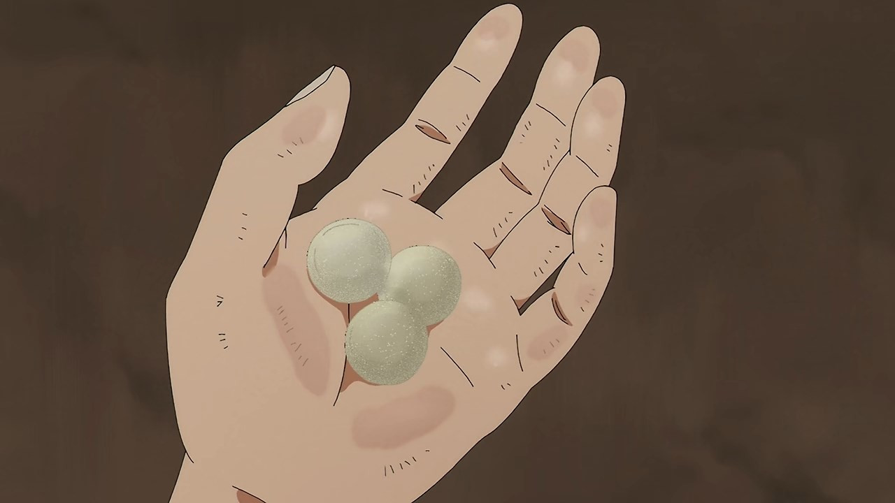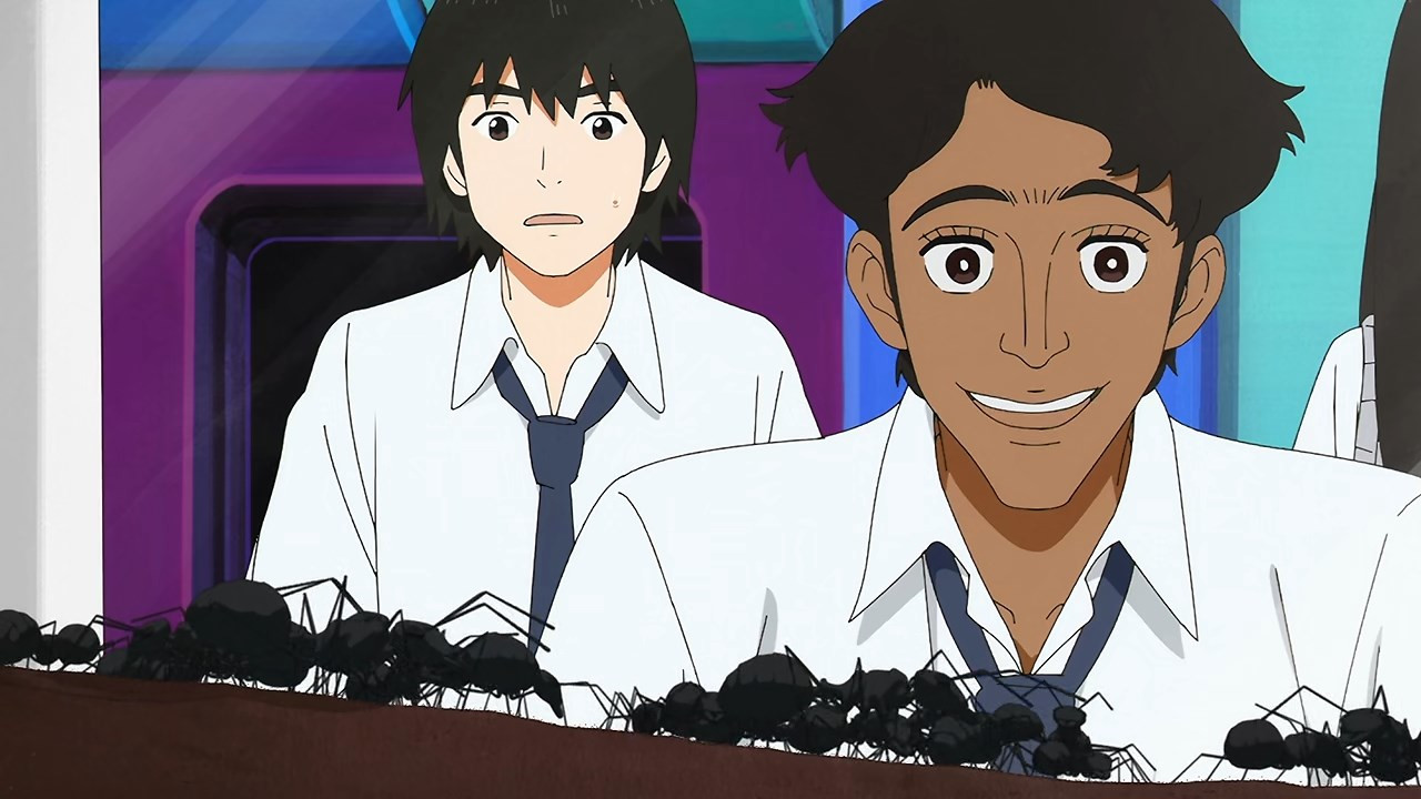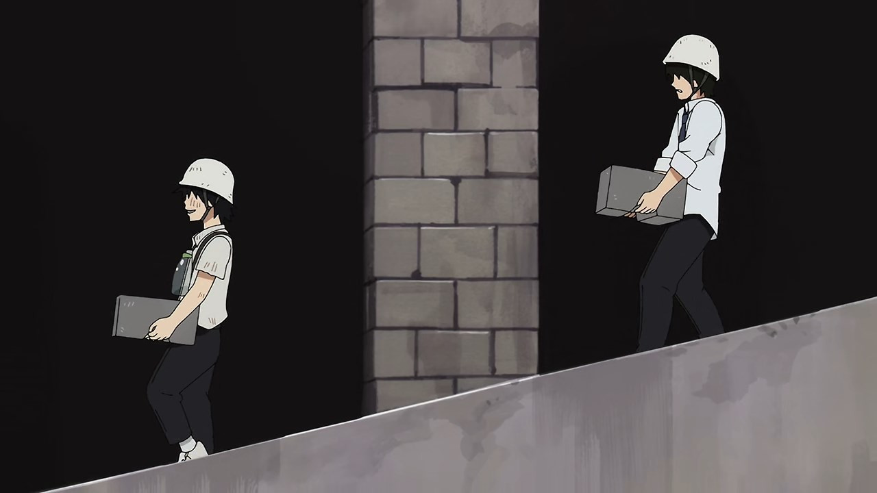 We already knew from Kunihiko last week, but this castaway business has been going on for a long damn time. And the fact that everyone comes from the same middle school would seem to confirm that the passage of time inside the this worlds is totally disconnected from the “real” world. The ants in the upside-down world chase after a pointless dream of building a tower to Heaven. They know it’s a waste of time (200 years in the case of Futatsuboshi, the sempai who takes Nagara under his wing until he’s eaten by cave bugs – sorta) but the pursuit of a phony dream at least gives them something to do. Which if you’re immortal has considerable value.