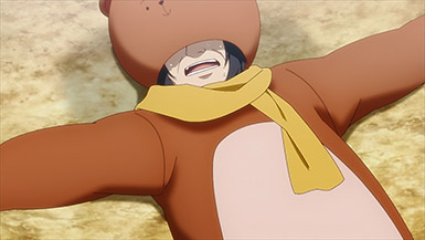 Where this episode excels is with how it characterizes Kumatani’s past. It was pretty gratifying to see Kumatani lose it and stuffed the director in his bear costume to show him what it’s like to be in the costume. Even though the remainder of the episode had his co-workers concerned about if he’d be punished for stuffing his boss in a bear costume on a hot day, flashbacks help to explain much of the past trauma Kumatani had when he was canned from his last company because he punched his boss for repeatedly kicking a stray kitten’s box.