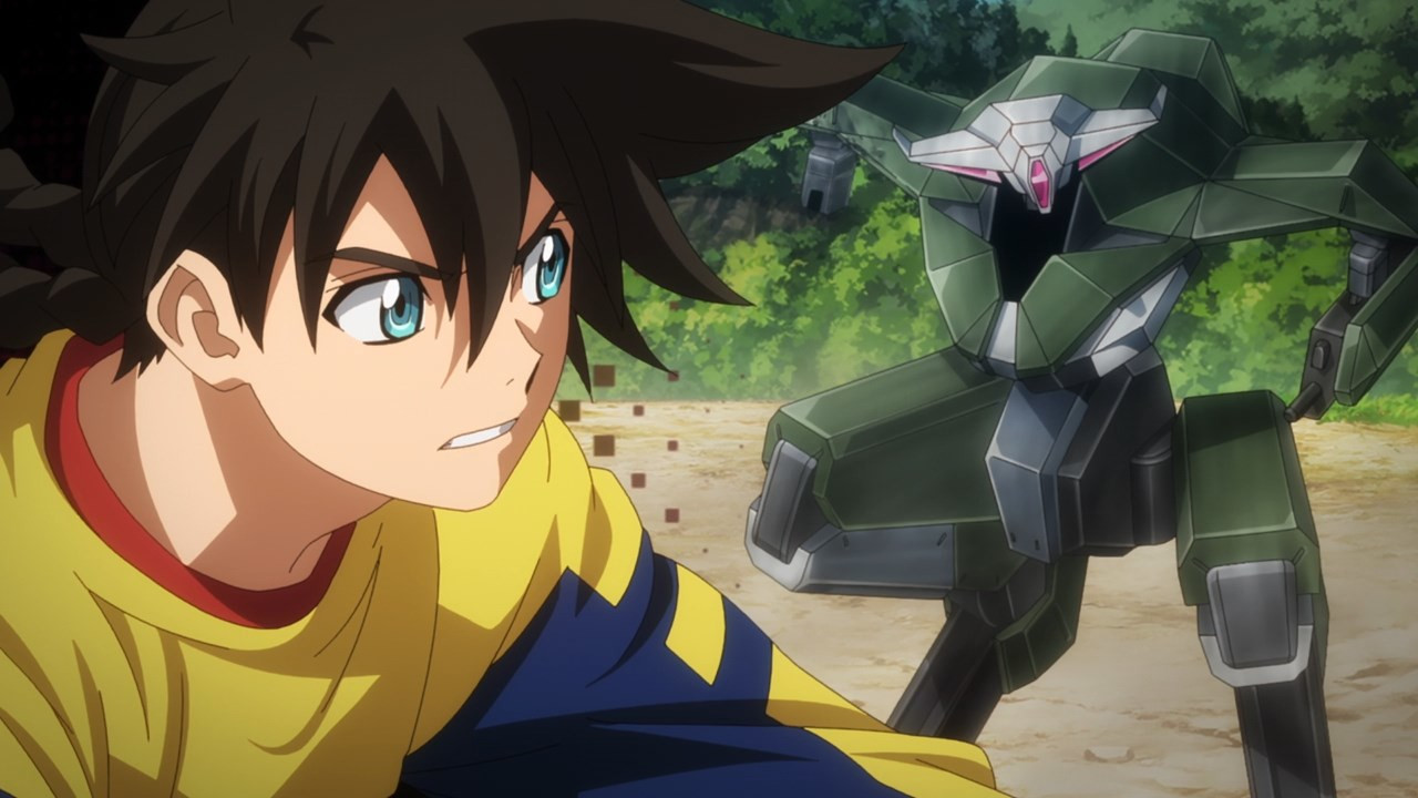 Building off the handy dandy RC Preview, Kyoukai Senki is effectively the latest Sunrise kick at the mecha franchise can. At a glance there’s a lot of familiar components buried under the hood, whether that be the always fun mecha designs of Ebikawa Tanekaki, the almost ubiquitous setup of eccentric dweeby lead in Shiiba Amou (Satou Gen) stumbling across and piloting an even more eccentric mech, the mecha support staff in chirpy AI mascot Gai (Fujiwara Natsumi), and even the premise of downtrodden Japan wholly at the whim of upstart foreigners – yes, I assure you those Code Geass references all but write themselves. It’s the old school mecha style you know and love, now adapted to the modern year.