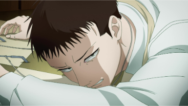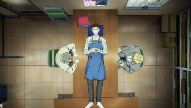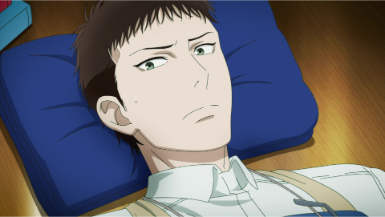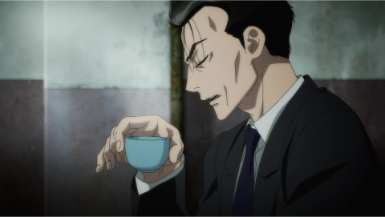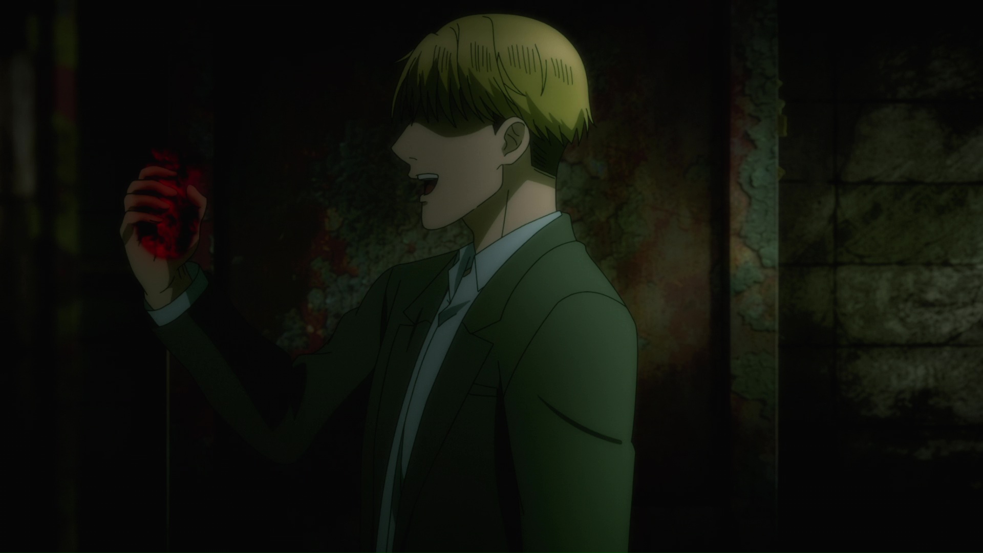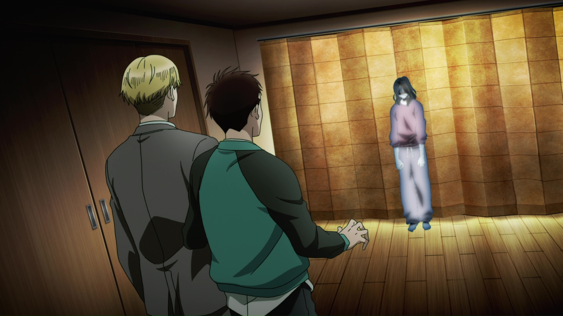 With all that said, what didn’t excite me, or rather, what I found lacking in their relationship was something simple: chemistry. They didn’t win me over as a pair. I’m not familiar with the original manga, so perhaps this is something the author developed as the chapters went? We’ll have to wait and see. While the premise is not innovative by any means, the actual investigative work and how they access supernatural information (by combining Mikado’s eyes and Hiyakawa’s ears) to uncover crimes and how they’ve chosen to animate the scenes was interesting. There was also the curious case of heart eating by Hiyakawa and I also really liked the cynical detective character, Hanzawa-san (Mikami Satoshi). And it seems we’ll be delving into curse territory, I’m curious enough to see where this is going.