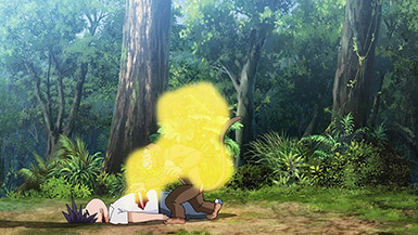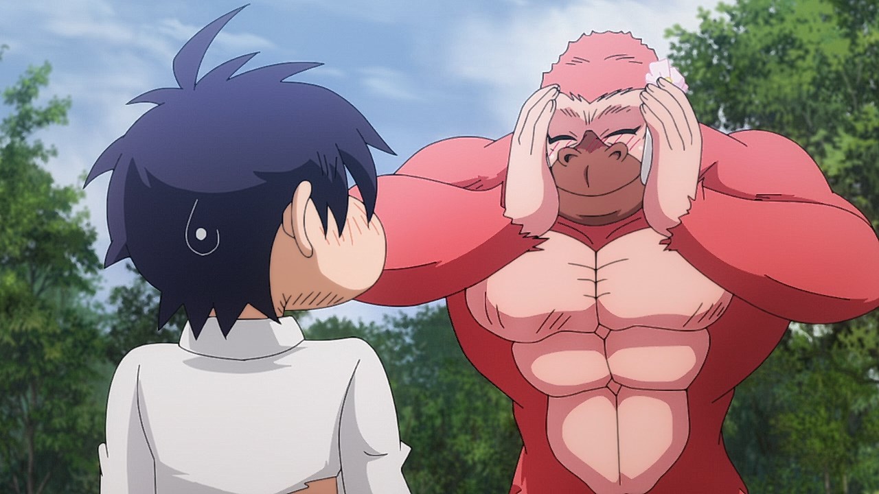 As an experience, Shinka no Mi’s first episode evaporates as quickly as it lands. If it wasn’t for Saria, the pink gorilla who wants to claim Seiichi as her new husband, it would be a watered-down version of Kumo Desu Ga, Nani Ka? that revels less in the premise’s absurdity and more in the symbolic victory Seiichi has of being a cooler version of his unflattering real self.