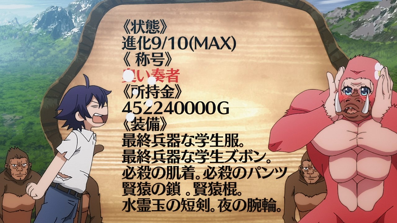Absurd or wacky comedies can be a wonderful experience, but with Shinka no Mi, the cheapness of the animation, the action, and the comedy make it feel more immature than eccentric. It doesn’t do much to have fun with the RPG world aside from being empowering to Seiichi and only has a few funny moments with Saria’s desire for Seiichi. I might be wrong and this might be a pleasant isekai that ends up being surprisingly decent, but the only thing that kept the first episode from being yet another bland isekai was seeing our MC reject modernity and return to monke.