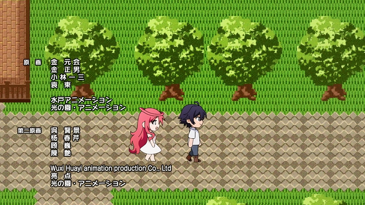 Even the first few minutes play out like a version of Kumo Desu Ga that pulls back its punches. Some blank slate classmates treat Seiichi horribly only for everyone to get cheerful, optimistic news of being warped into an RPG where they get to be cool and avoid their classwork. It wouldn’t be so painful if Seiichi had more to him, but his entire existence revolves around being a gross, obese kid that can finally lead a life where he’s too powerful and thin to mock for being gross and obese.