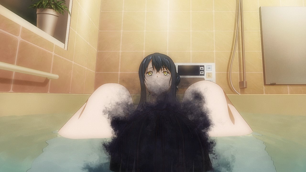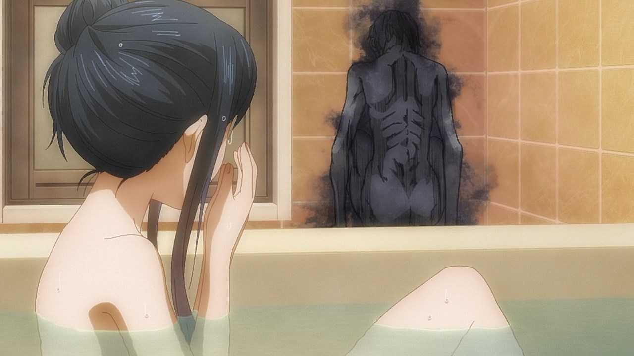 The last half of the episode is the most depressing it’s gotten yet considering how each new malicious spirit finds its way inside of her home. No matter what measures she takes, she’ll be forced to deal with a new batch of spirits haunting her television, her kitchen table, and even the bathroom. The bathtub scene might have been reminiscent of the scene where Nancy nearly falls asleep bathing in A Nightmare on Elm Street, but it just made me think how horrible it must be to face what Miko has to. There’s no space to just breathe or relax. Just ghosts.