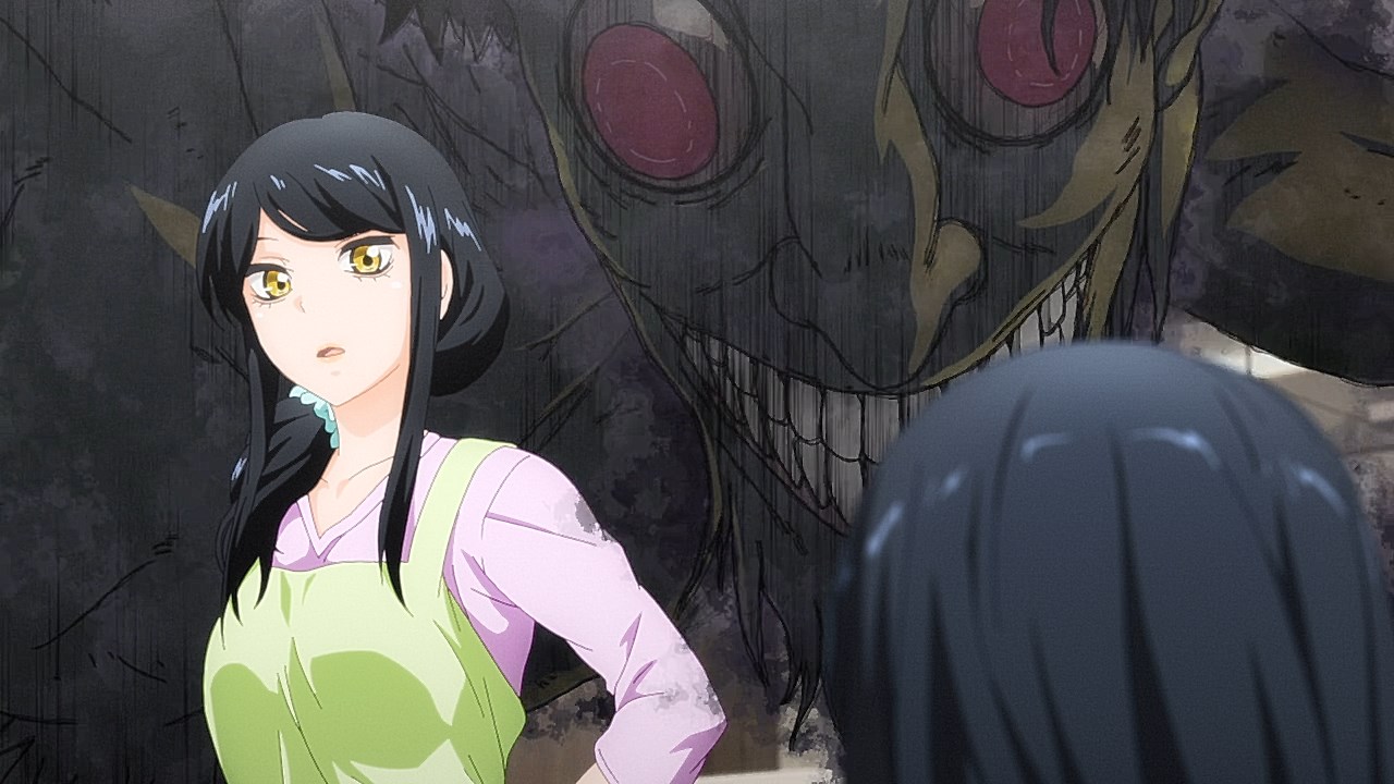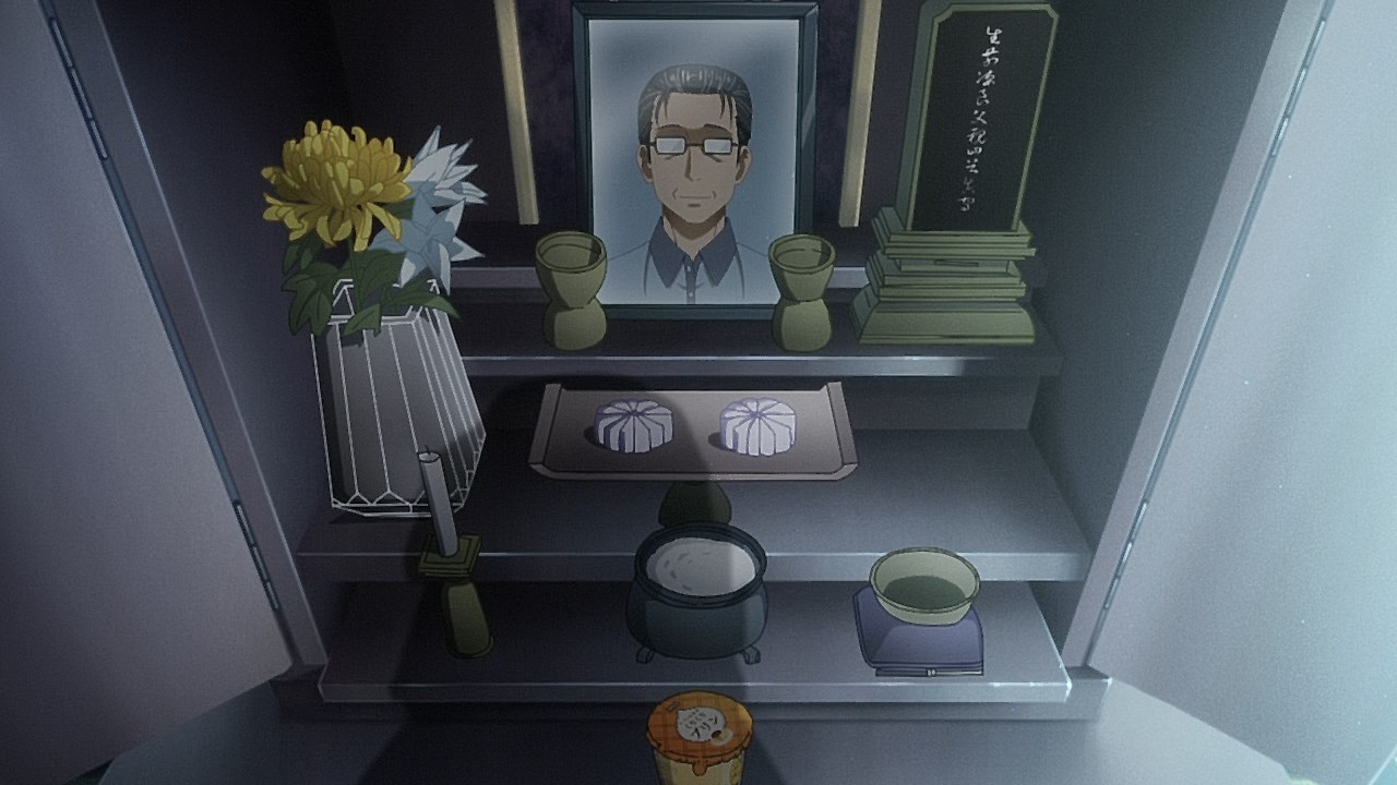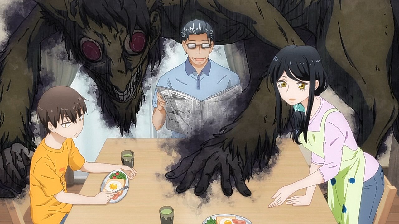 In this episode alone, he’s got a newspaper in hand at the breakfast table, and could possibly be aware that he shares his afterlife with ghouls that terrorize Miko. It calls to question if he has any kind of communication with Miko, if he’s done anything to try to help her out to avoid the monstrous spirits, and if, eventually, we can get some moments where she communicates with her dad or gets advice from him.
