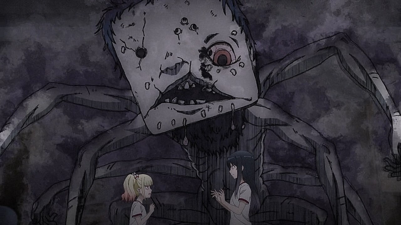 On this Halloween episode of Mieruko-chan, we are formally introduced to Yulia, the girl with multi-colored hair who follows Miko as she’s plagued by supernatural creeps. But while Miko tries to avoid as many as she can on her daily commute, Yulia yearns to become an apprentice to someone who can help her become a powerful exorcist who can eliminate the nastier spirits that have haunted her since she was a kid.