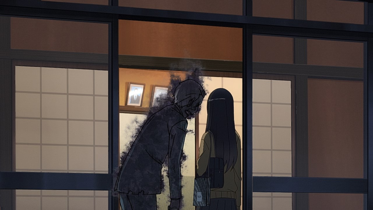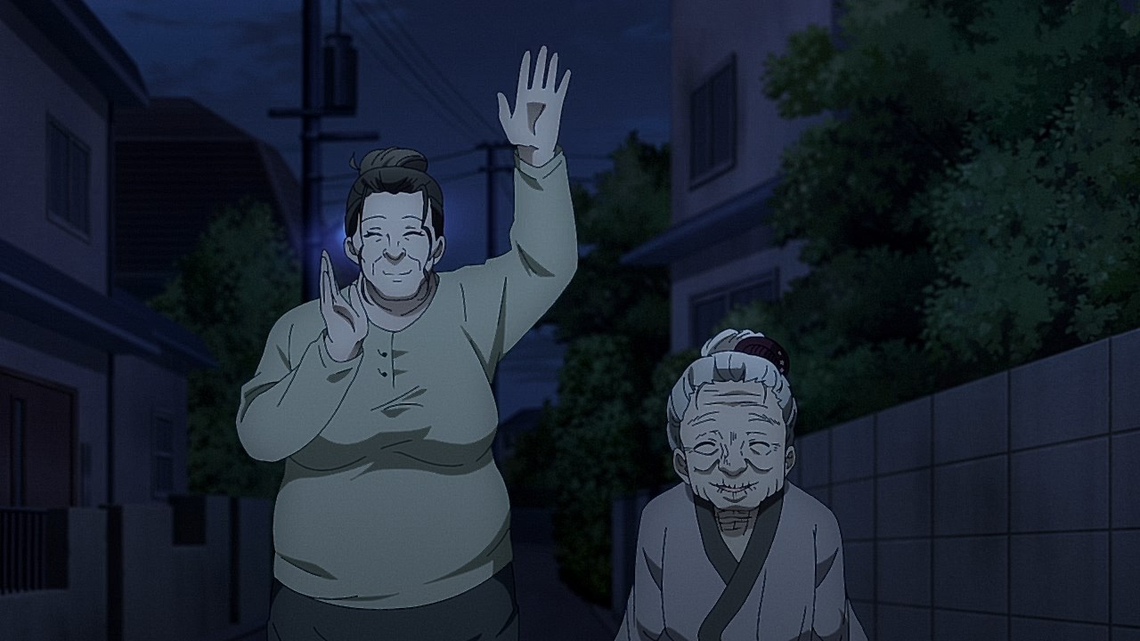 It was a relatively wholesome episode not just for the lack of unnecessary T&A, but also for how Miko’s ghost encounter in the second half could also show that not all of the ghoulish-looking ghosts are looking to throttle or attack other humans. While the ghost grandfather was still a fearsome specter, his purpose around both Miko and his living wife was to allow someone to give her the hint that he left a gift for his wife in a secured safe.