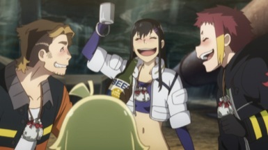 After entering the colony, which just so happens to be Gagumber’s home colony, Zackletu and Yuri take some rest because they are still intoxicated, at least Yuri is, once he gets a little better, Yuri invites Gagumber to drink with him, to which he accepts on the terms that Gagumber could vent. However, Yuri is the one who pulls on Gagumber’s ear this time. Before that though, we get some backstory into Rufus. There wasn’t really an explanation as to how exactly Rufus died, but, just that we’re supposed to feel for Gagumber and I guess it does explain some of his actions. Later Gagumber meets up with an old friend and Zackletu prepares her plan with Memenpuu, pretending to be a friend, when in reality she drugged her tea. It is also revealed that Zackletu is actually Zack and is Rufus’ son. I don’t really understand the sex change thing or if Zack was a girl from the beginning, or what is going on, I don’t really want to think too hard about it, probably next episode we’ll get some explanation, or maybe none, as Zackletu was allowed to continue traveling with the group. It’s a big question. But whatever, I guess…