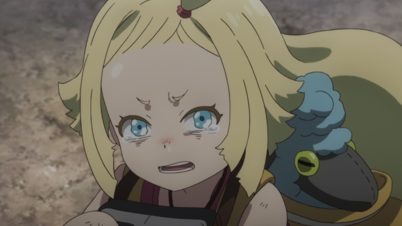 After burring the flowers and the cactus flower as well, everyone is able to sober up and Memenpuu gets her earshot. By Gagumber that is, of course not literally, but with his word, this causes discord between them, Gagumber literally calls her out, no mercy, straight headshot, he calls her selfish and that she’s not thinking for the whole group. He doesn’t resort to violence, he never hits her, but he does tug on her satchel making her fall and hit her knees. Everything coming out of Gagumber, of course, turns out to be true, but he didn’t have to say it like that. The worst part he’s adamant about not apologizing. So for the rest of the time, Memenpuu goes back into her shell and is just forced to tag along, and like any good father, Gagumber ignores the awkward tension between them. What can I say the symbolism is there, but the writers are not willing to make Gagumber a straight-up scum, just a jerk who is too much of a simpleton to know better. It took two other characters to make Gagumber realize he’s maybe in the wrong. Urorop appears in the background of the final shot, stalking the group from afar.