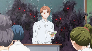 The scene where he calls on Miko to read has to be one of my favorite moments in the show. Never has Miko’s attempt to avoid the supernatural been so harrowing as she tries to avoid the attention of dangerous spirits, ranging from deceased cats to an increasingly agitated ghoul fixated on Zen.