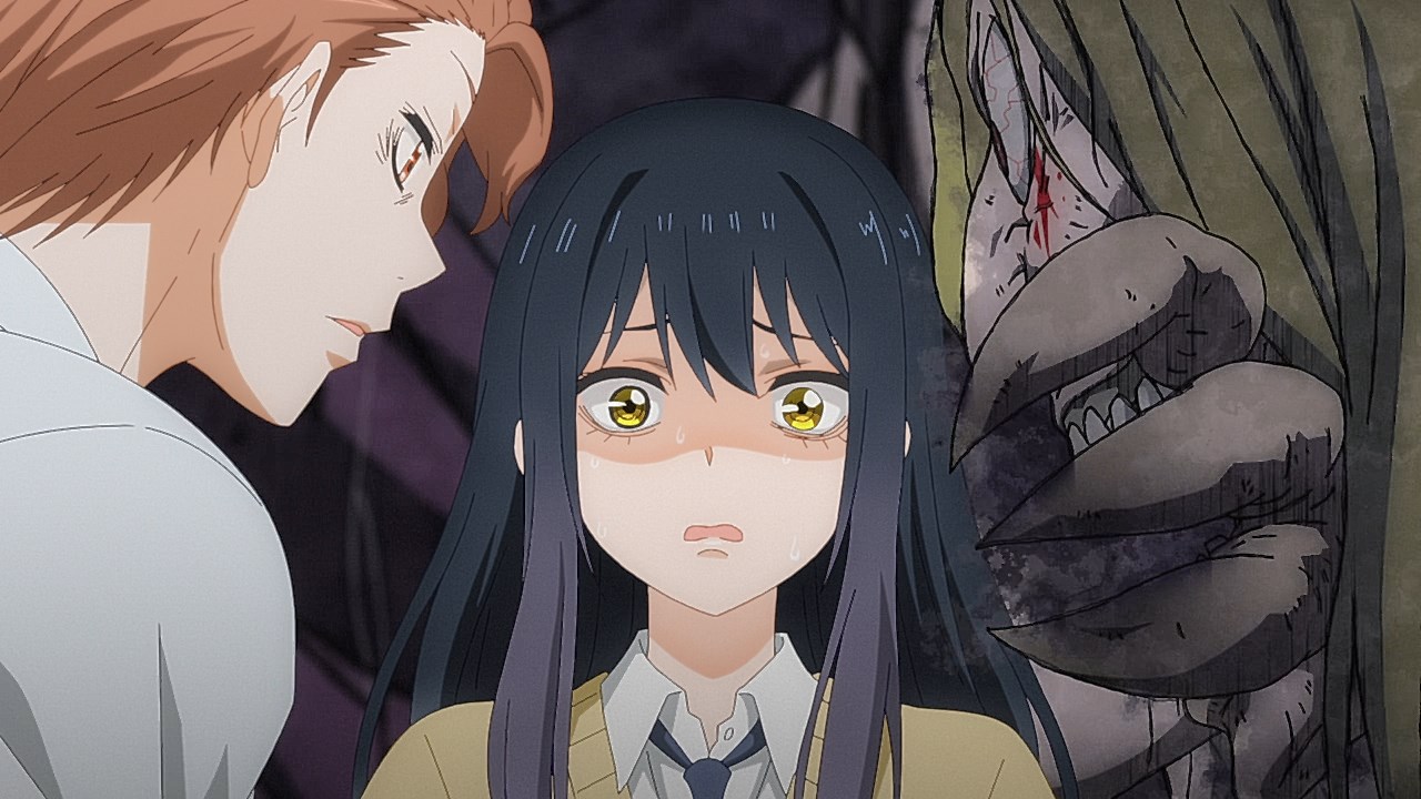 This week’s Mieruko-chan is without a doubt the show in its peak form as Miko has to counterbalance avoiding the ire of haunted ghouls and the attention of her new cat-killing teacher Zen. Her tense encounters with the supernatural are made even worse when she comes to realize she might not be protected from scarier spirits for much longer.
