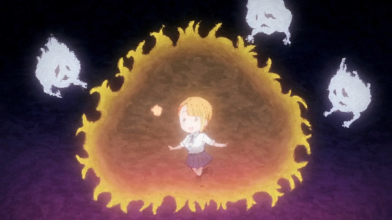 Similarly, they now both have a general idea that Hana has amassed a large amount of spiritual energy, granting her the ability to exorcise spirits through her aura. It was funny to see that Hana’s hunger might be attributed to the presence of haunted spirits, and that her hunger pangs have likely intensified because of the vengeful ghosts that surround Zen. At some point, I’d hope that she ends up becoming somewhat aware of the abilities so that she isn’t left stranded and ignorant of her potential.