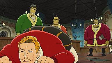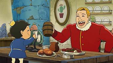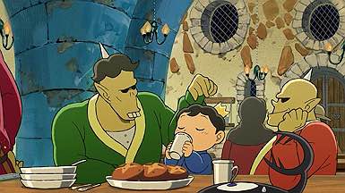 Death-par is really a wonderful addition to the cast – genuinely funny, and quite a fascinating and likeable person. And critically, he’s someone who’s obviously very good at this job, which is exactly why Bebin schemed to get him paired off with Bojji. He wastes no time in putting his training to the test, illicitly getting three subordinates (he is a prince after all) to interrupt during his celebration dinner with the boys and goad Bojji into a fight. Once again Kage shows his doubts, and once again he’s proven wrong – Bojji has learned a lot from Death-par already (and he was quite good on his feet to begin with).