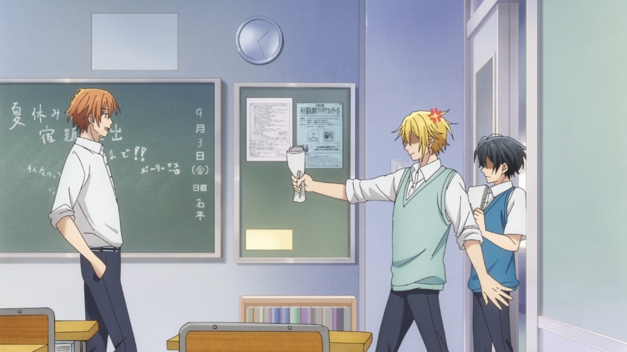 Sasaki doesn’t especially like sour things and buys a 100% all-sweet plum juice drink, while Miyano can’t stand sweet things. Because of this, there’s already a backlash from Miyano’s side, they’re not an instant match, at least not one that is plastered all over the wall. Instead, they’re more like a light and dark situation, yin and yang, but their feelings for each other might take longer to pronounce. Overall I really liked this premiere of Sasaki to Miyano and think it’s doing a great job so far at adapting the manga into TV form, it was really such a trip watching a manga I wholeheartedly enjoy and think of as nothing but wholesome, in animated form.