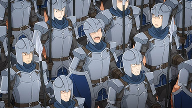 The worst part about it steering towards relishing in Wein’s brilliant strategies is that none of it actually looks appealing. So much of the flashy action it wants to reveal plays out through stiff combat that would be practically bloodless if the head commander wasn’t decapitated and didn’t have his head paraded around the battlefield like we’re in Devilman.