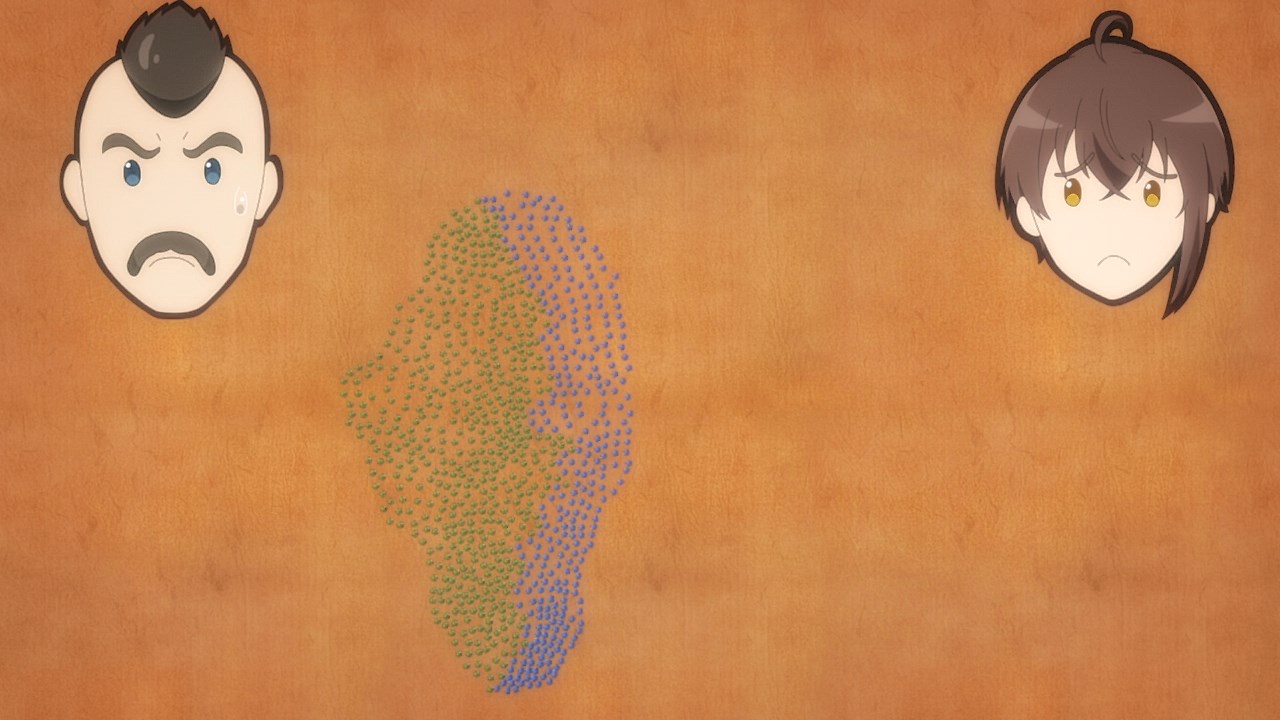 I’m enjoying the light novel a lot, but am very disappointed with the adaptation so far. One of the LN’s strengths is unexpectedly thorough worldbuilding, which this episode skips completely, including the first arc that explains why on earth an empire would arm and train a neighbour’s army in the first place. The same can be said for all kinds of other good moments that happened before this point in the novel chronologically, like characterisation (Wein and Ninym’s relationship has a lot more bite to it, even in the meow scene). Even Wein is a better character on his own terms–yes, he has plenty of whining brat moments, but they don’t drag on the way they do in the anime, and with access to the worldbuilding, we get to see the reasoning behind his decisions.
