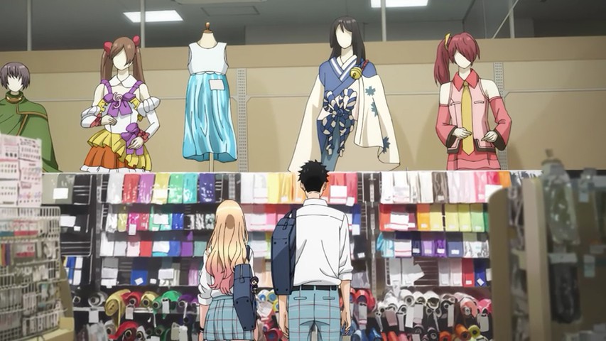 I use to Cosplay during Anime conventions. (US Cons) I would always be in and out of craft shops, home decor stores, home Kitchen isle at Macy and Walmart, looking for material for my props and costume. So when I saw Gojo and Marin in a craft store I became happy. However, Sono Bisque Doll wa Koi wo Suru gets off tangent too often. As a former cosplayer I want Marin and Gojo dive further into Marin’s hobby. Yet, the amount of Fanservice we are given is enough to creat a side story for a filler episode, or two…or three.