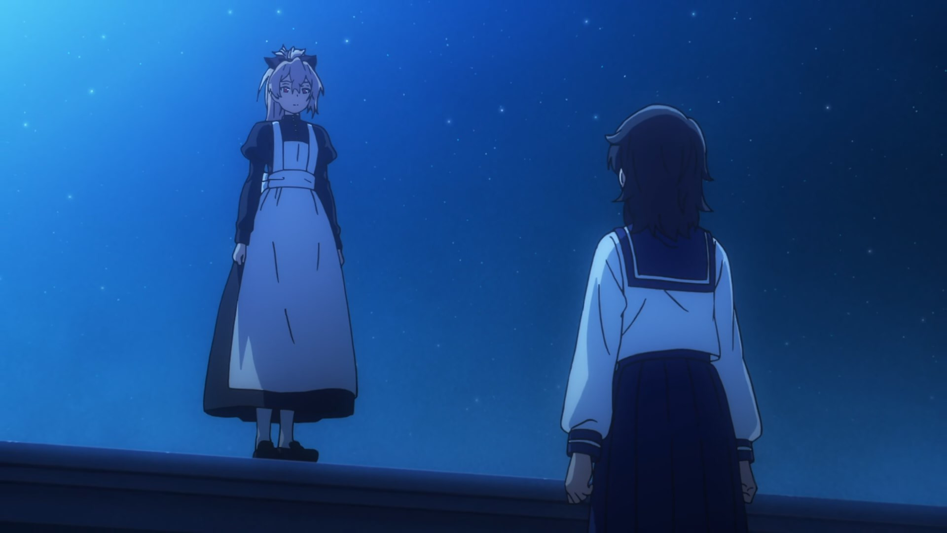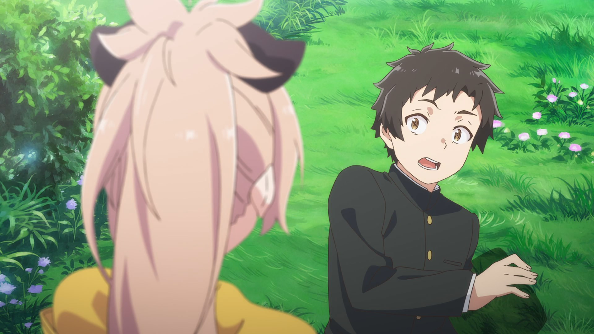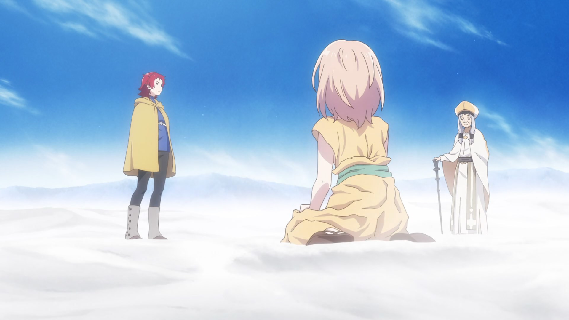While Virgin Road admittedly teased this flipping of the isekai script through its synopsis, it’s still something to see in action. Priestess turned executioner Menou (Saeki Inori) is case in point: her brutal mindset and capabilities are teased right from the start, but you sure don’t get an appreciation of why she’s hunting those with no choice in their circumstances until seeing her in action. No matter how generic the personalities at work might be – Menou’s bubbly and possessive junior Momo (Kanemoto Hisako) is the definition of closet yandere waiting to strike – there’s something to be said for how they’re featuring thus far, especially in terms of premise. After all you can easily guess without even needing to read the synopsis that Menou is going to run into issues when confronting new girl Akari (Kahara Moe), that those issues will force them together, and that over time Akari will wind up having Menou question just what she’s really after – and how guilty she ultimately is. It’s the story framework we’ve seen time and again, but the tweaks here and there (particularly JC Staff’s above average visuals) strongly suggest it’ll be a fun ride.