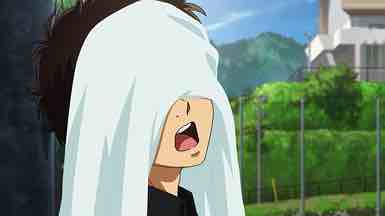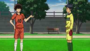 Those of you who follow soccer know that this sort of thing happens all the time. Guys try to goad especially troublesome opponents into lashing out at them and getting booked, sometimes successfully. Usually it takes the form of a slap, but I’m put in mind of Leicester’s Jamie Vardy suckering Sevilla’s Samir Nasri into butting him (and getting sent off) in the late stages of their round of 16 Champion’s League tie in 2017. It’s part of the dark side of soccer (like diving and racist fans) but it’s a very real part of the game (indeed the most unrealistic thing here may be the keeper apologizing after the fact). This slip-up not only costs Aoi’s team the match, but him a possible recommendation to a soccer power high school.